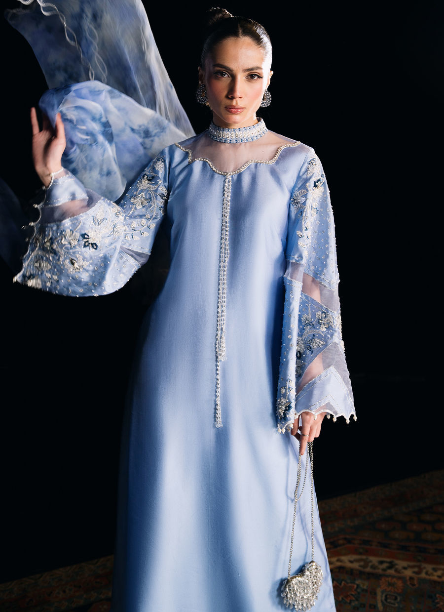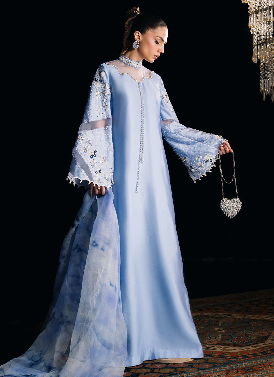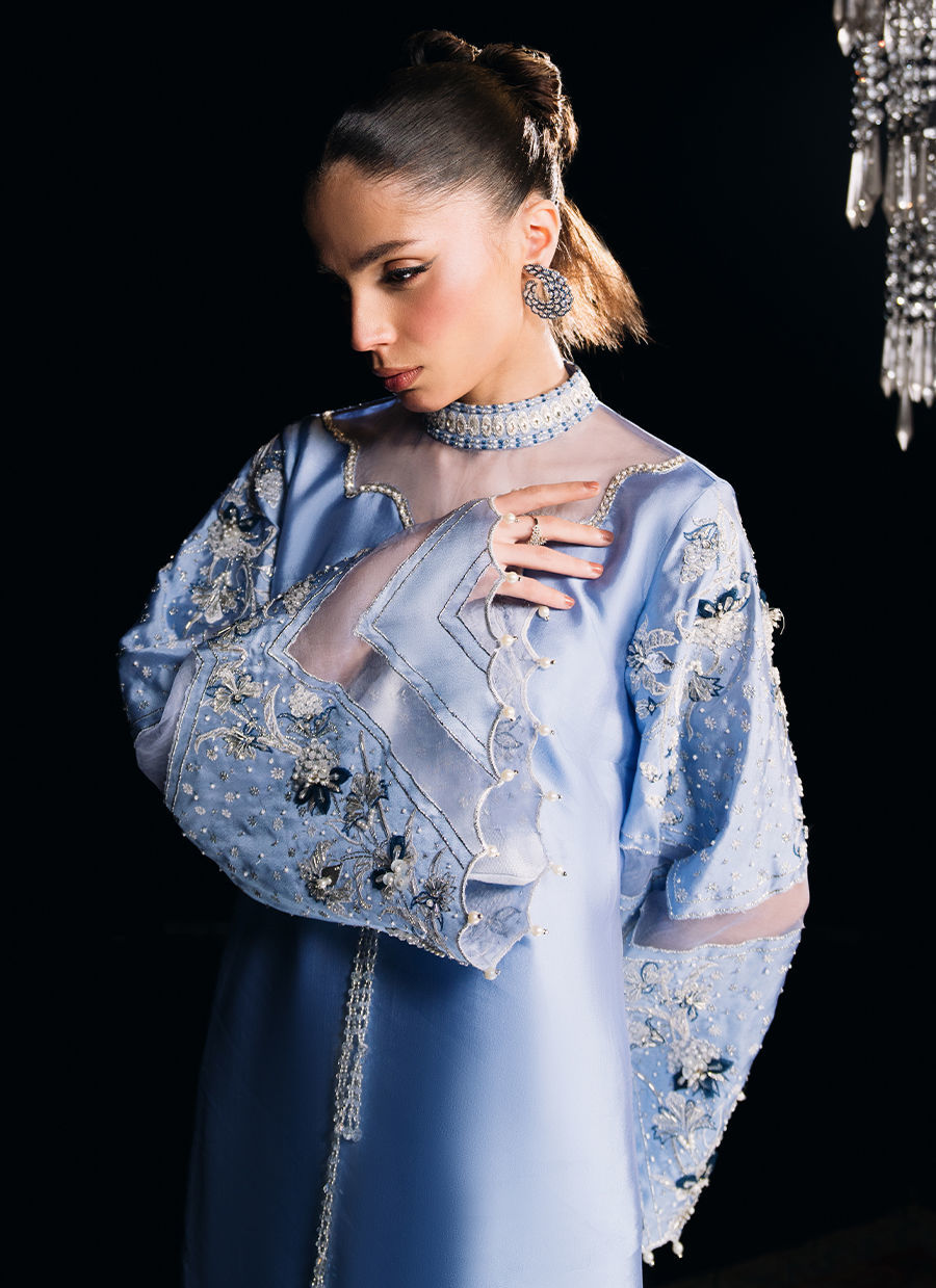 Color: Powder Blue Fabric: Kaaftan (Tissue Silk), Ciagrette pant(Thai silk), Dupatta (Organza) Work Details: Hand-Embellished