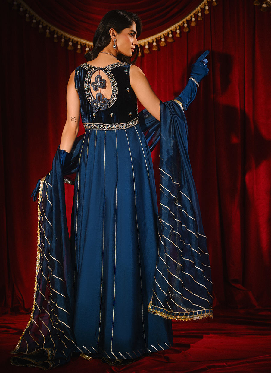 Color: Teal Fabric: Velvet Work Details: Embellished