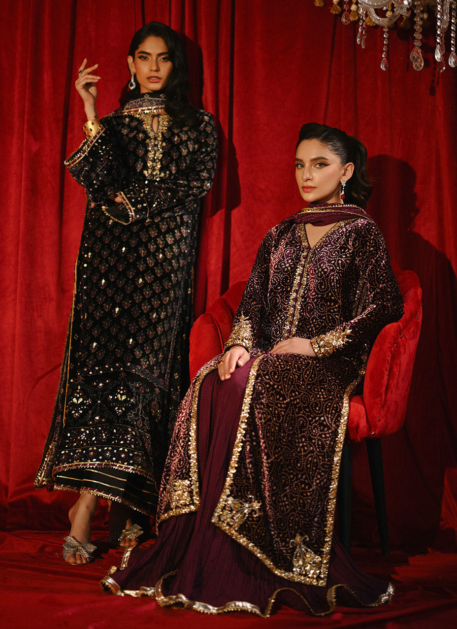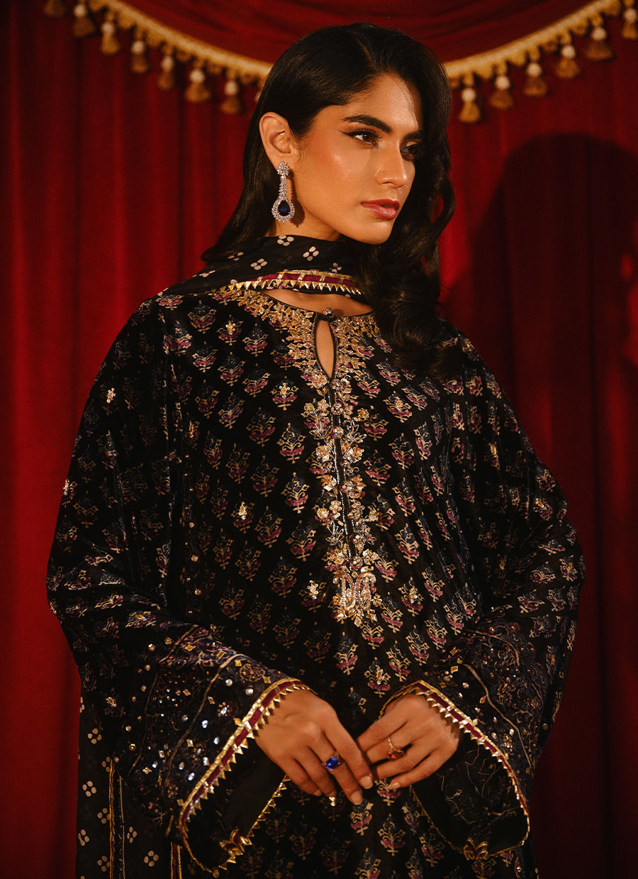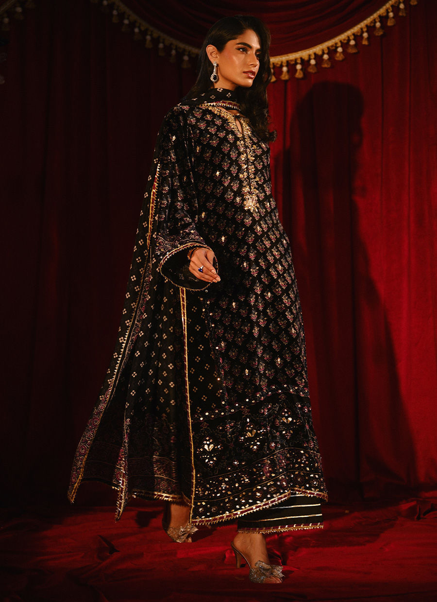Color: Black Fabric: Velvet Work Details: Embellished