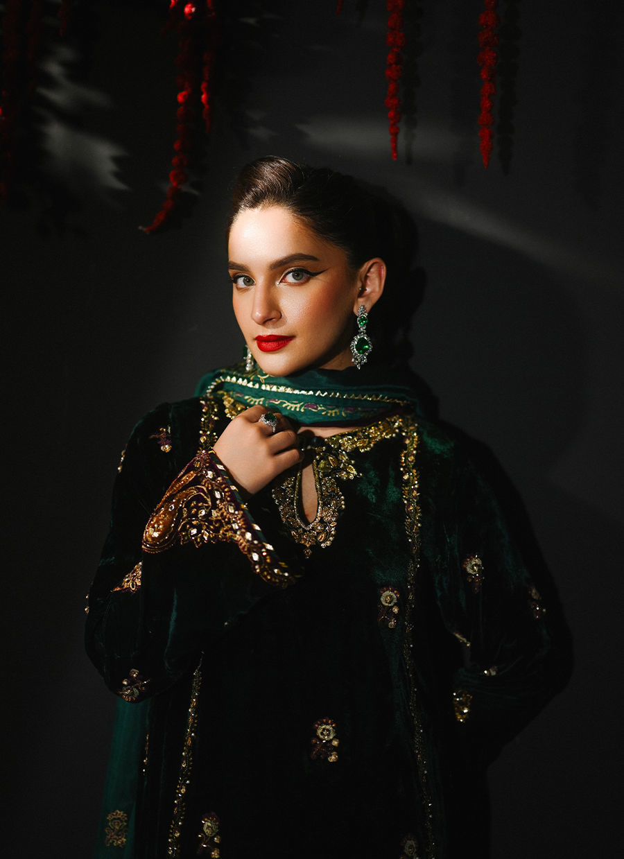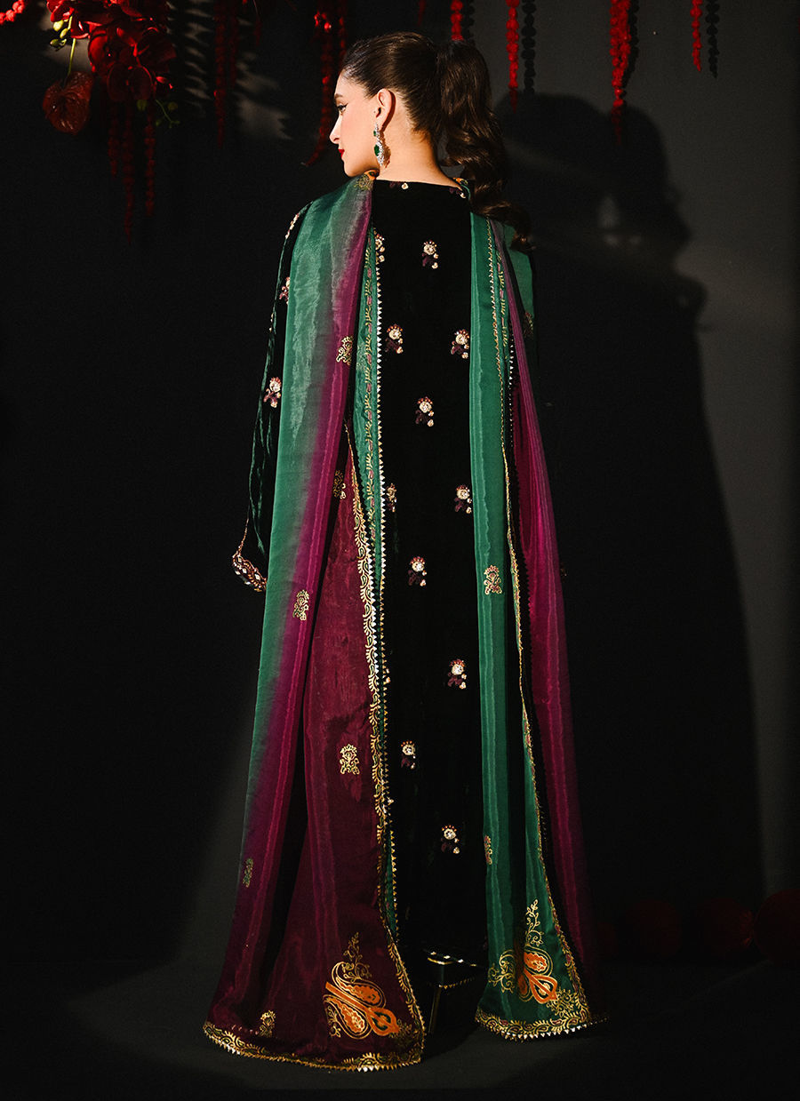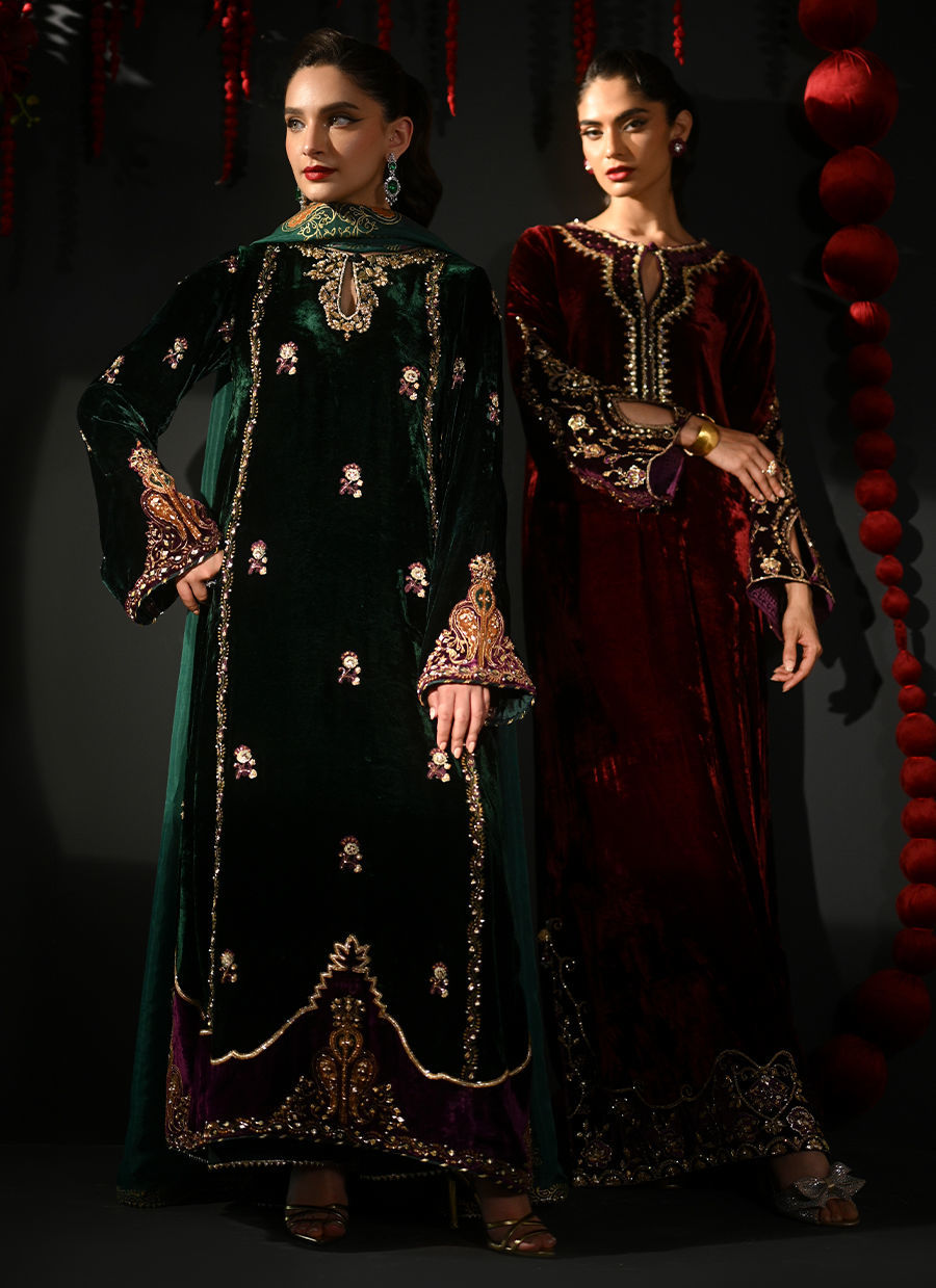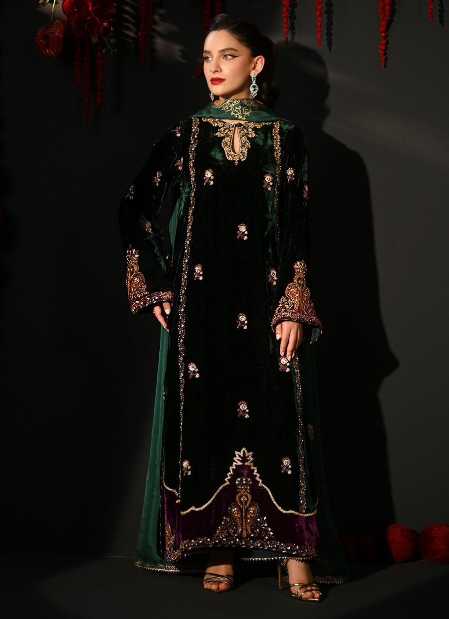 Color: Emerald Green and Purple Fabric: Velvet Work Details: Embellished