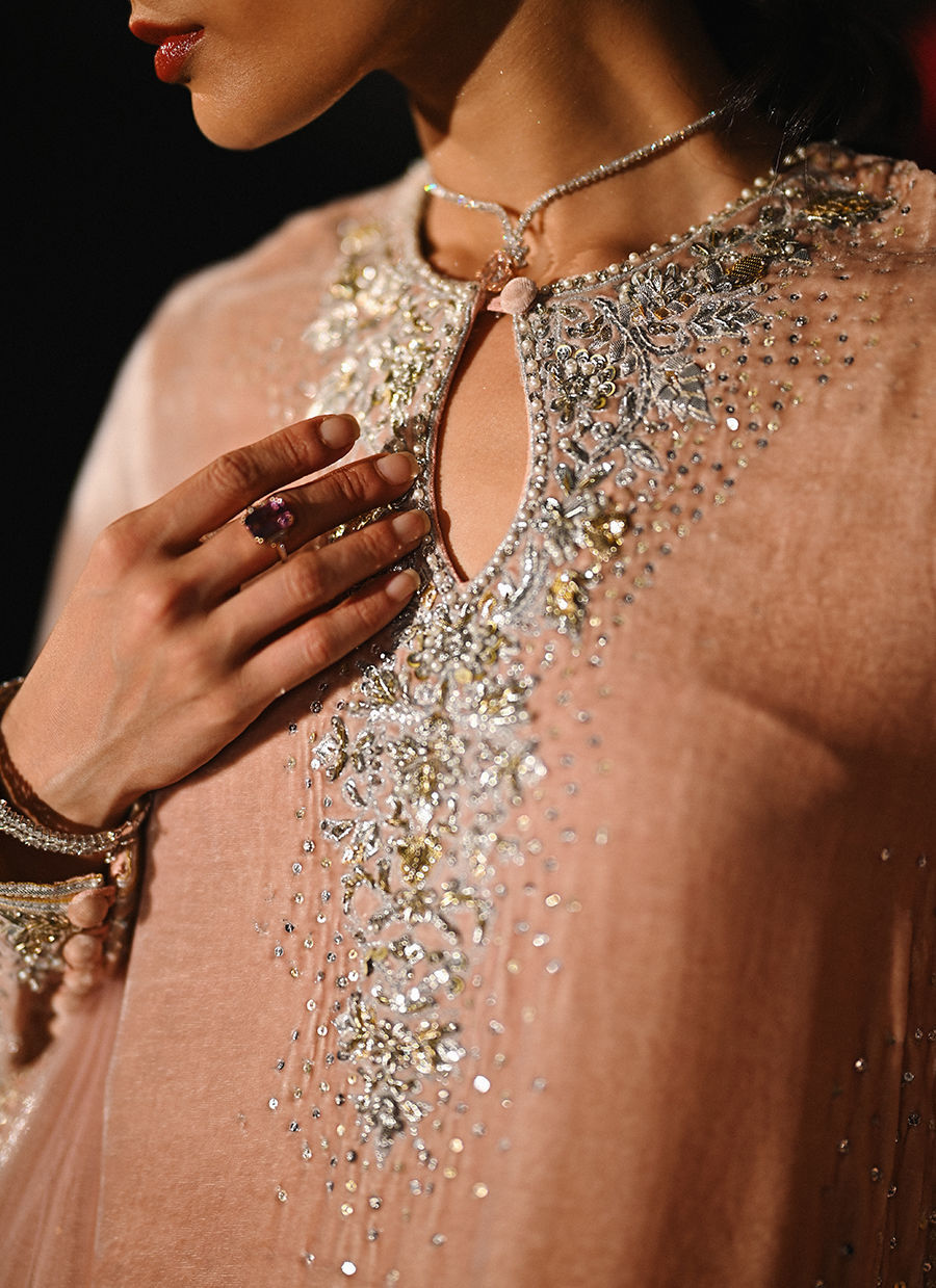 Color: Powder Pink Fabric: Velvet Work Details: Embellished