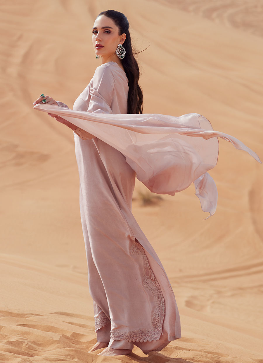 Color: Powder Pink Fabric: Shirt: Pure Raw Silk, Pants: Korean Silk, Dupatta: KP Silk