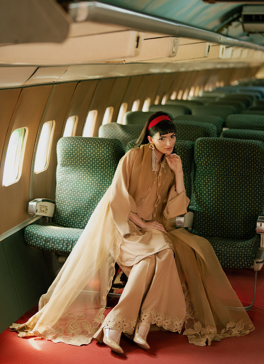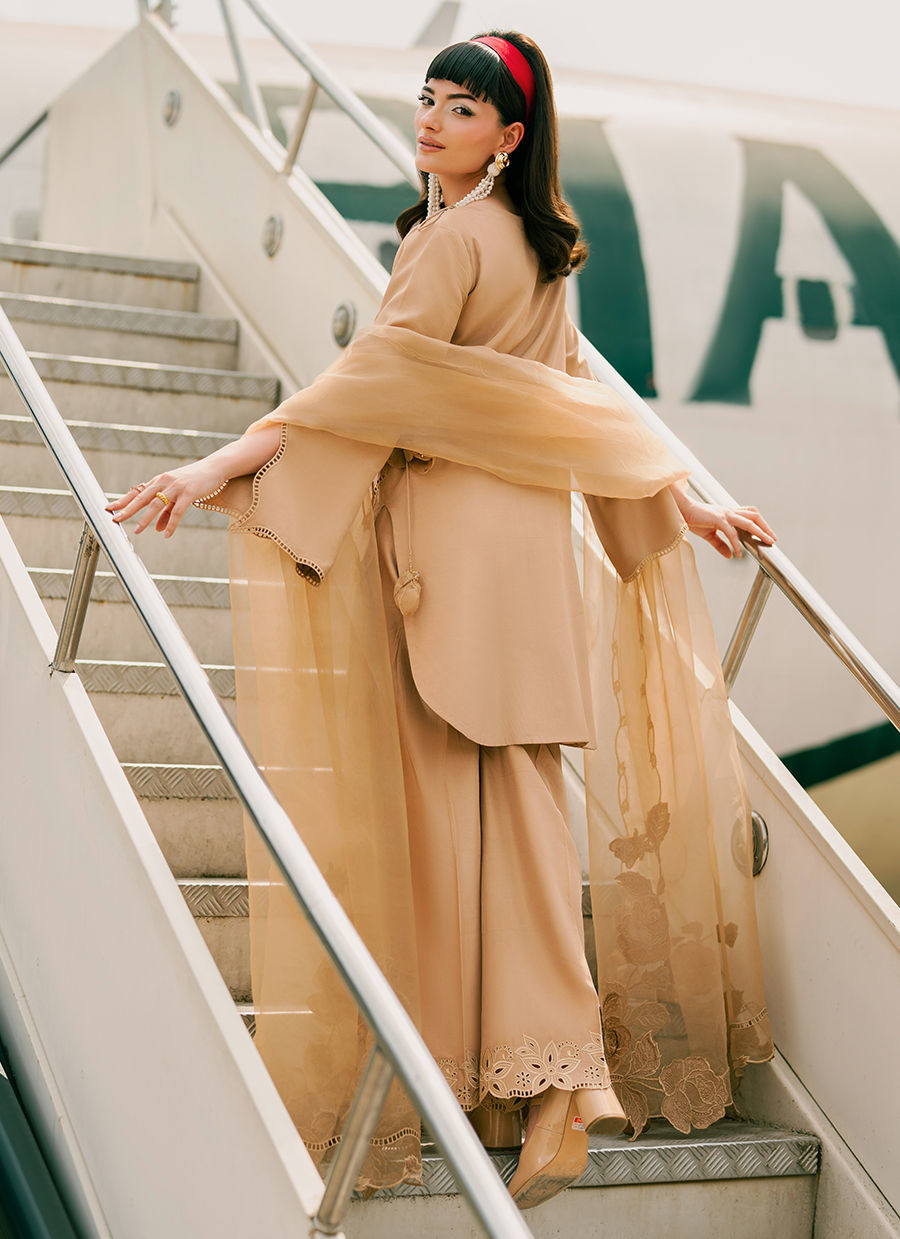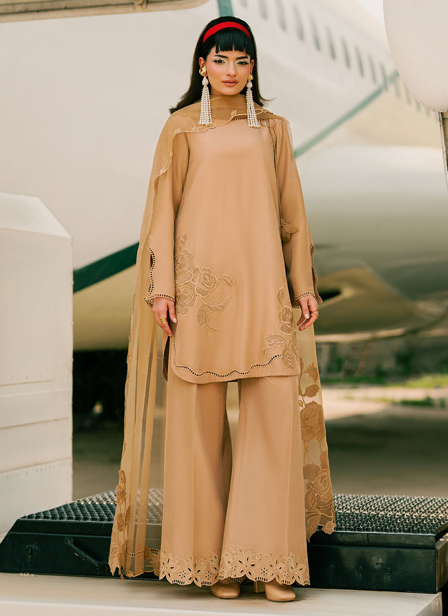 Color: Beige Fabric: Shirt And Trouser: Rameen Silk, Dupatta: Chiffon Work Details: Embroidered