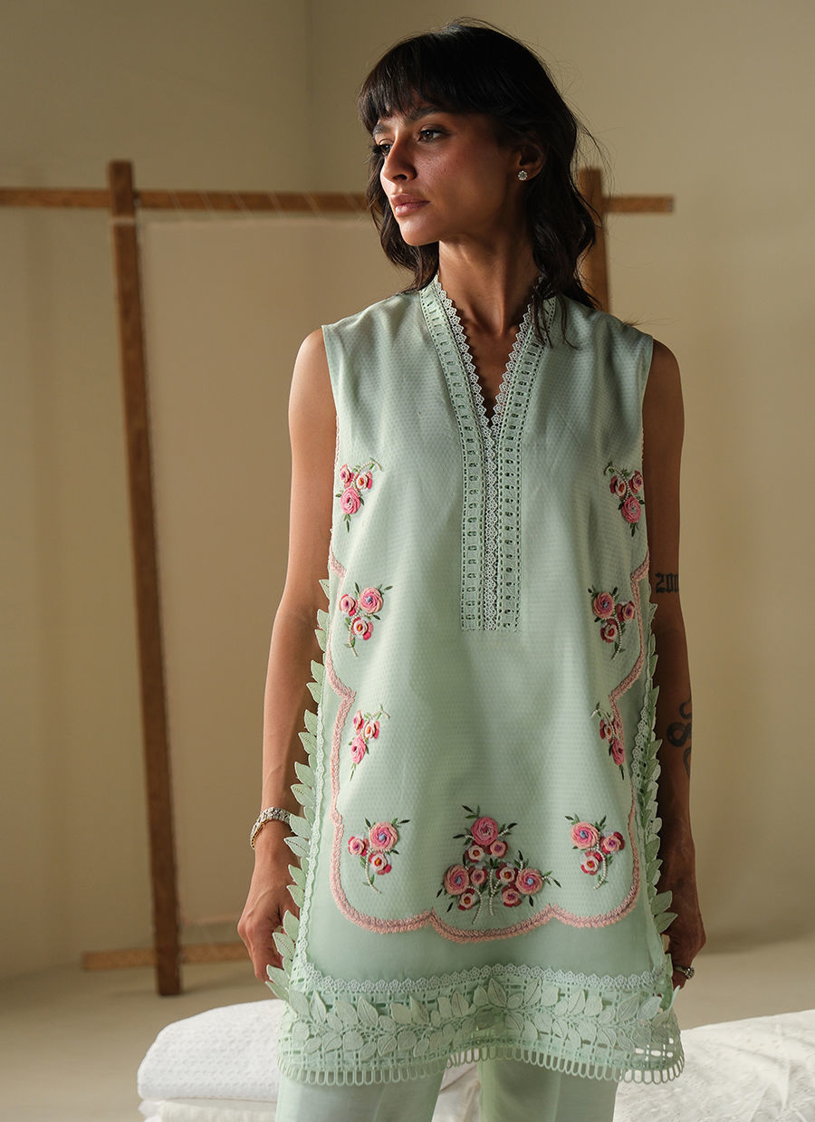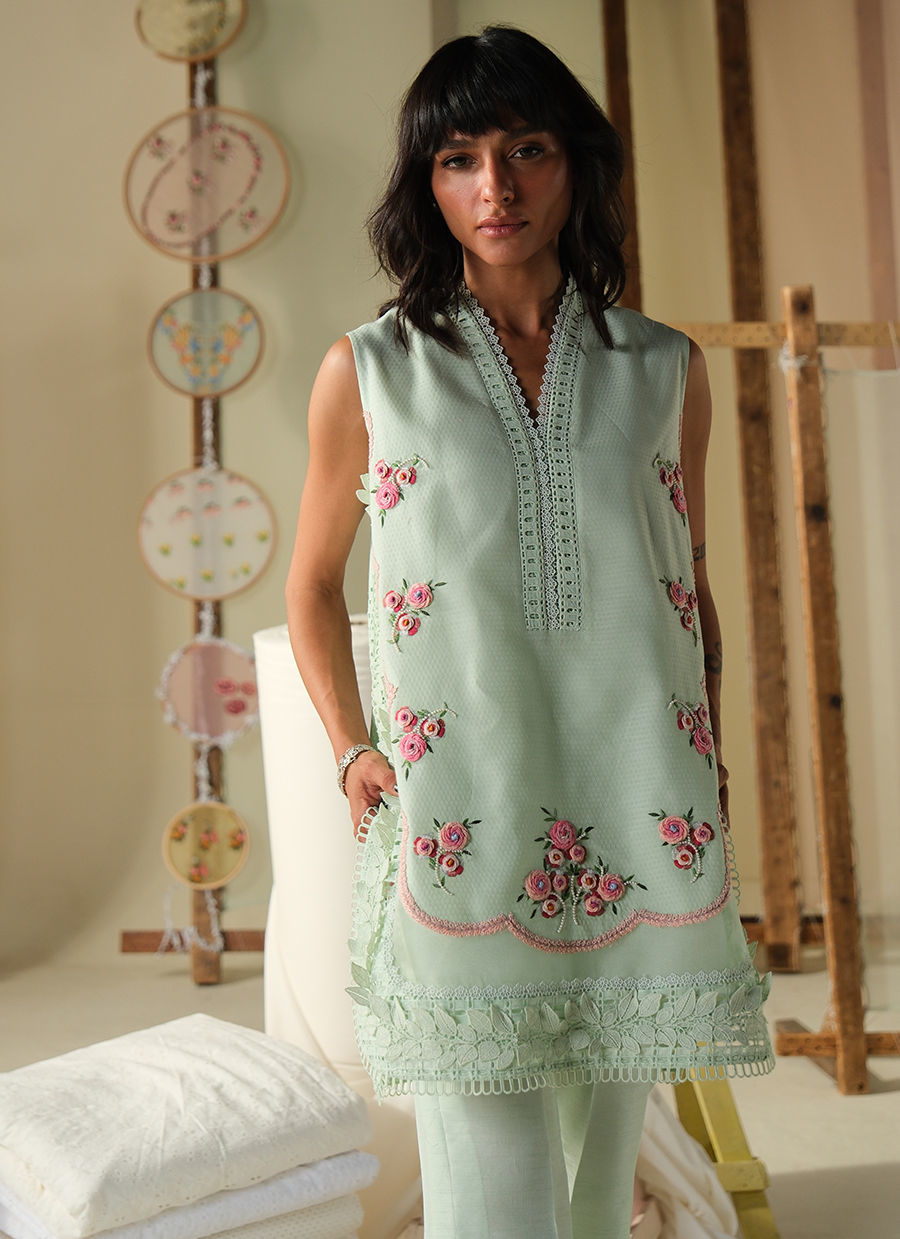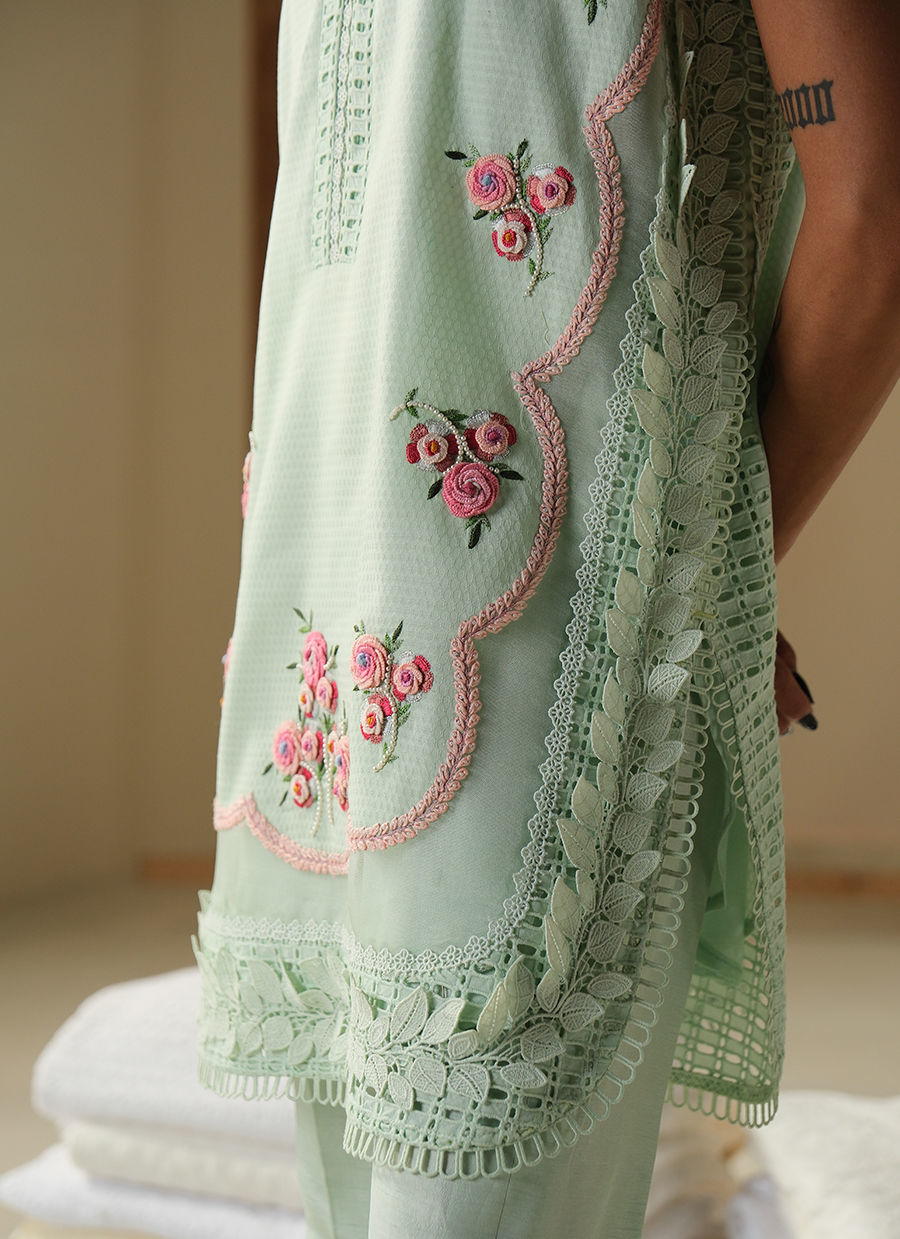 Color: Aqua Green Fabric: Cotton Work Details: Embroidered