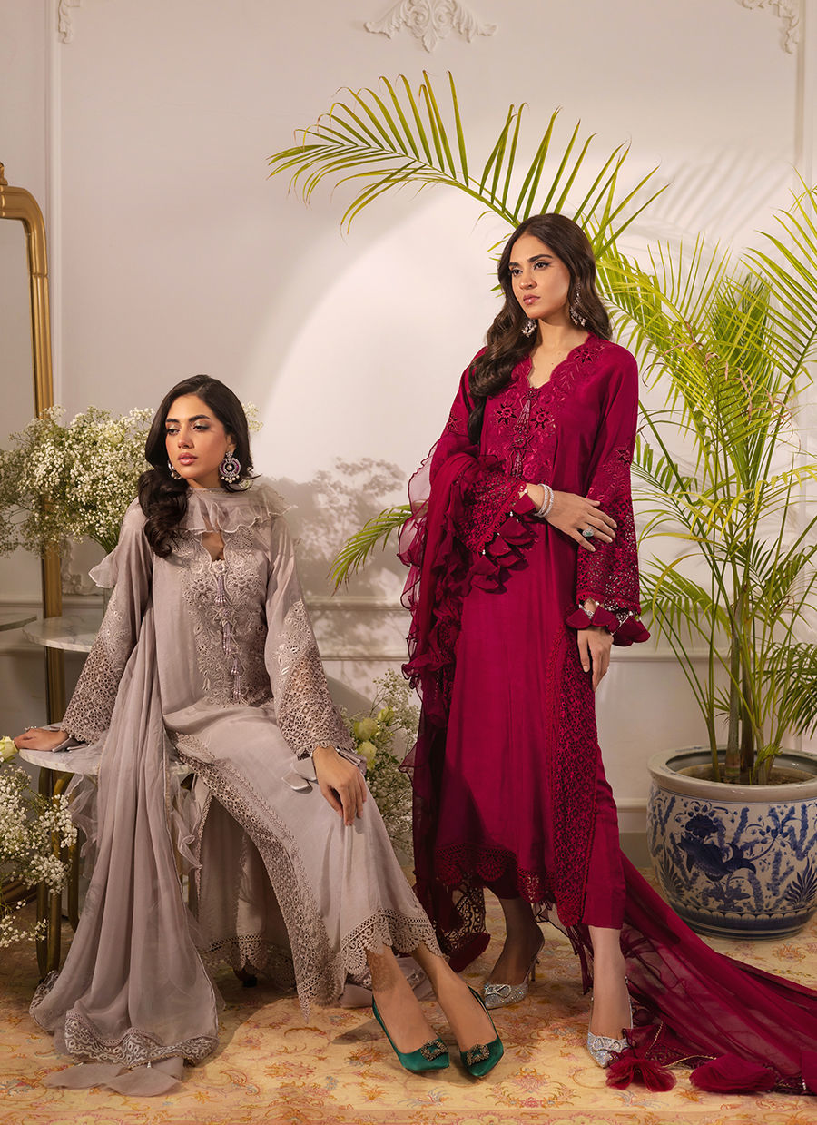 The Ashni taupe long silhouette shirt is a stunning piece crafted from luxurious raw silk, showcasing a subtle taupe shade. The intricate velvet applique details on the neckline add an elegant touch, while the side slits enhanced with delicate schiffli work provide movement and sophistication. To elevate the neckline, the shirt features monotone handcrafted tassels adorned with light-catching crystals, contributing to its overall allure. It is designed to be paired with straight raw silk pants. For a complete ensemble, it can be complemented with a ruffled dupatta, enhancing the outfit's beauty and versatility.