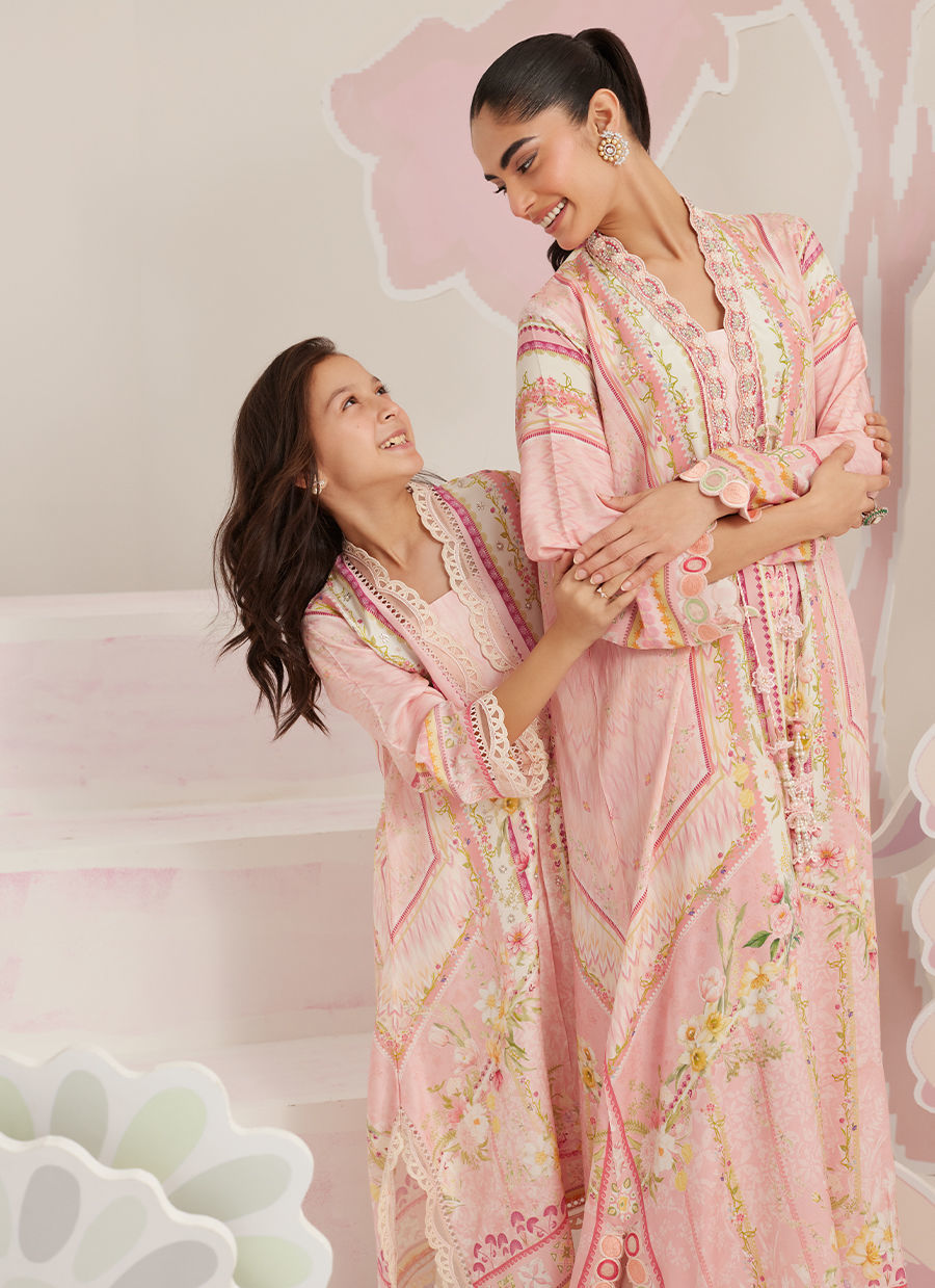 The gentle play of pastel florals and borders enhances the kaftan’s natural fall, making it a versatile choice for festive occasions where comfort and sophistication go hand in hand. Easy to wear yet thoughtfully detailed, Aurette is a statement piece that feels composed, graceful, and unmistakably elevated.