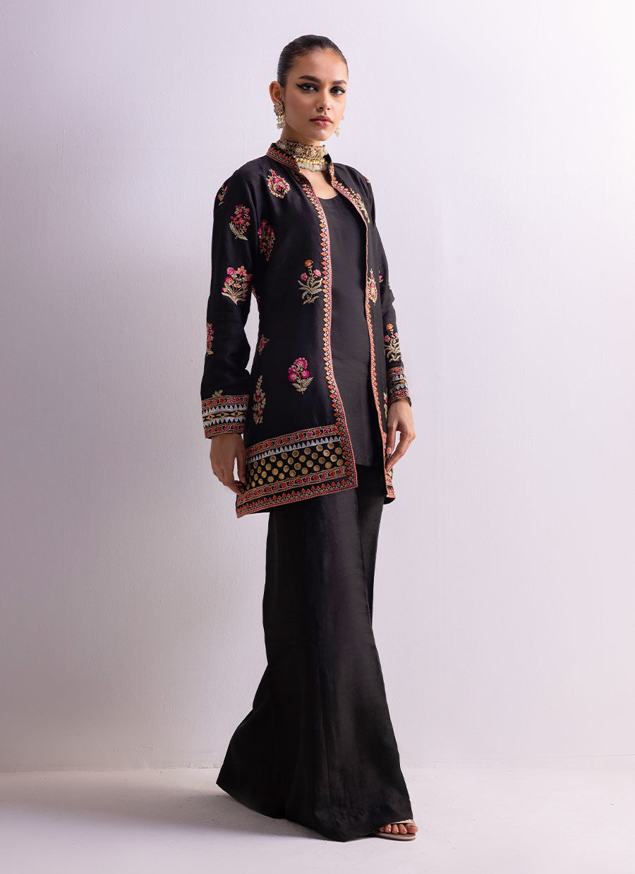 Color: Black Fabric: Raw Silk Work Details: Embroidered