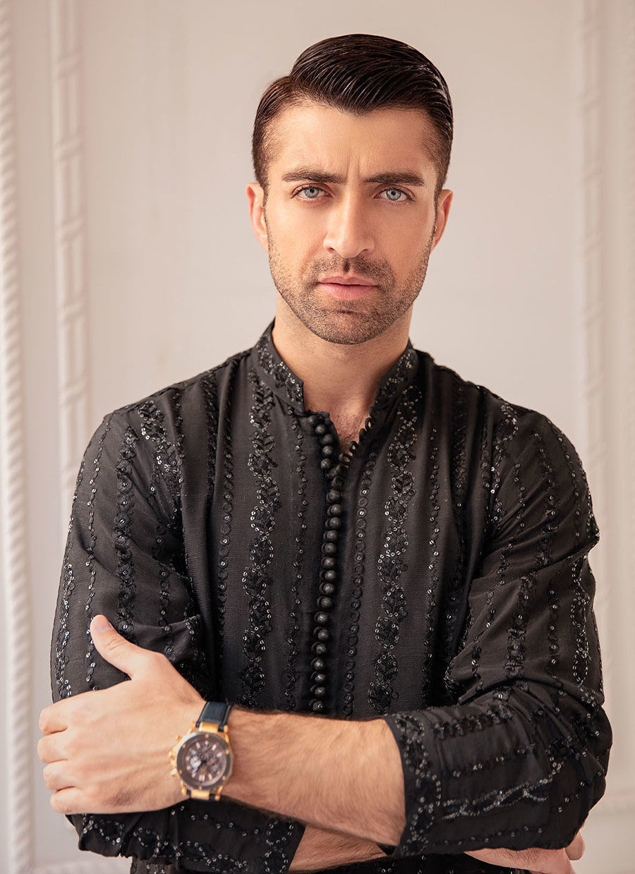 Color: Black Fabric: Raw Silk Work Details: Self-Embroidered