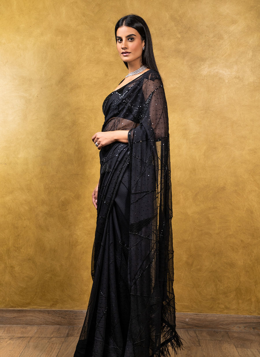 Color: Black Fabric: Chiffon Work Details: Embroidered