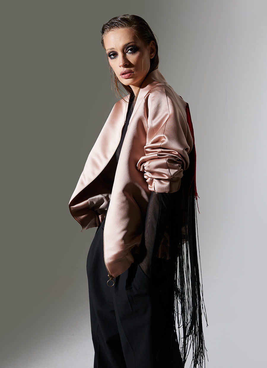 Razmir oversized Bomber jacket with mixed fringes and hand made beads.