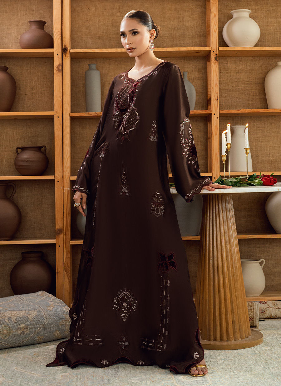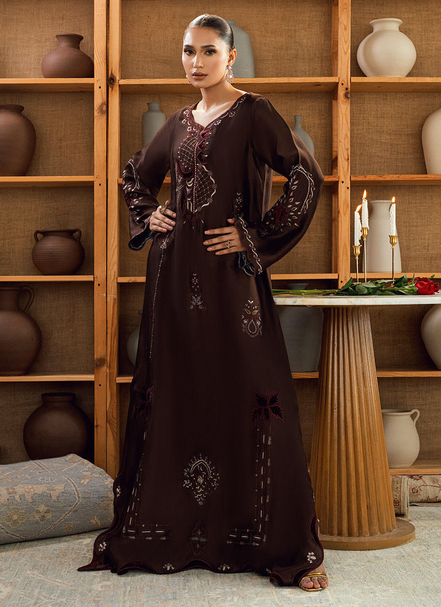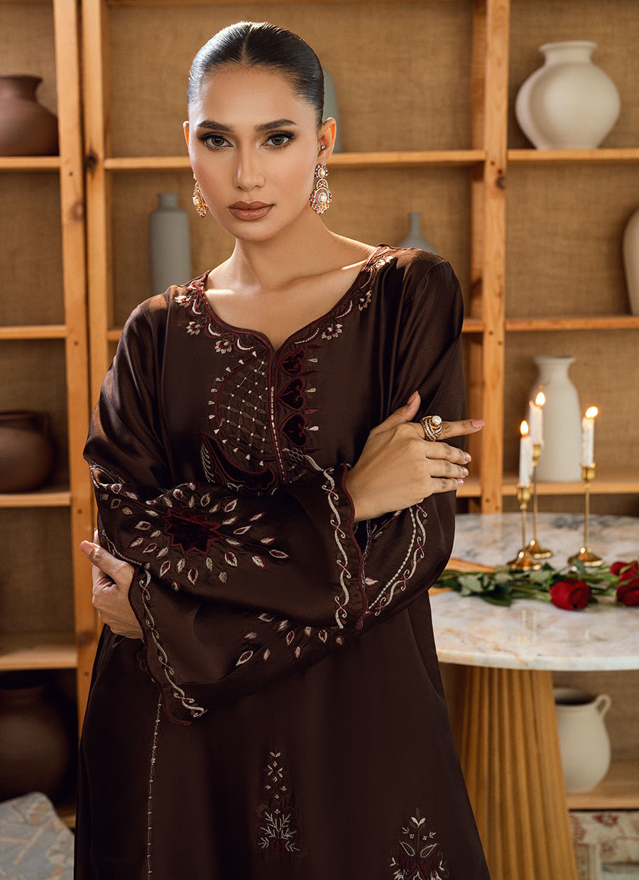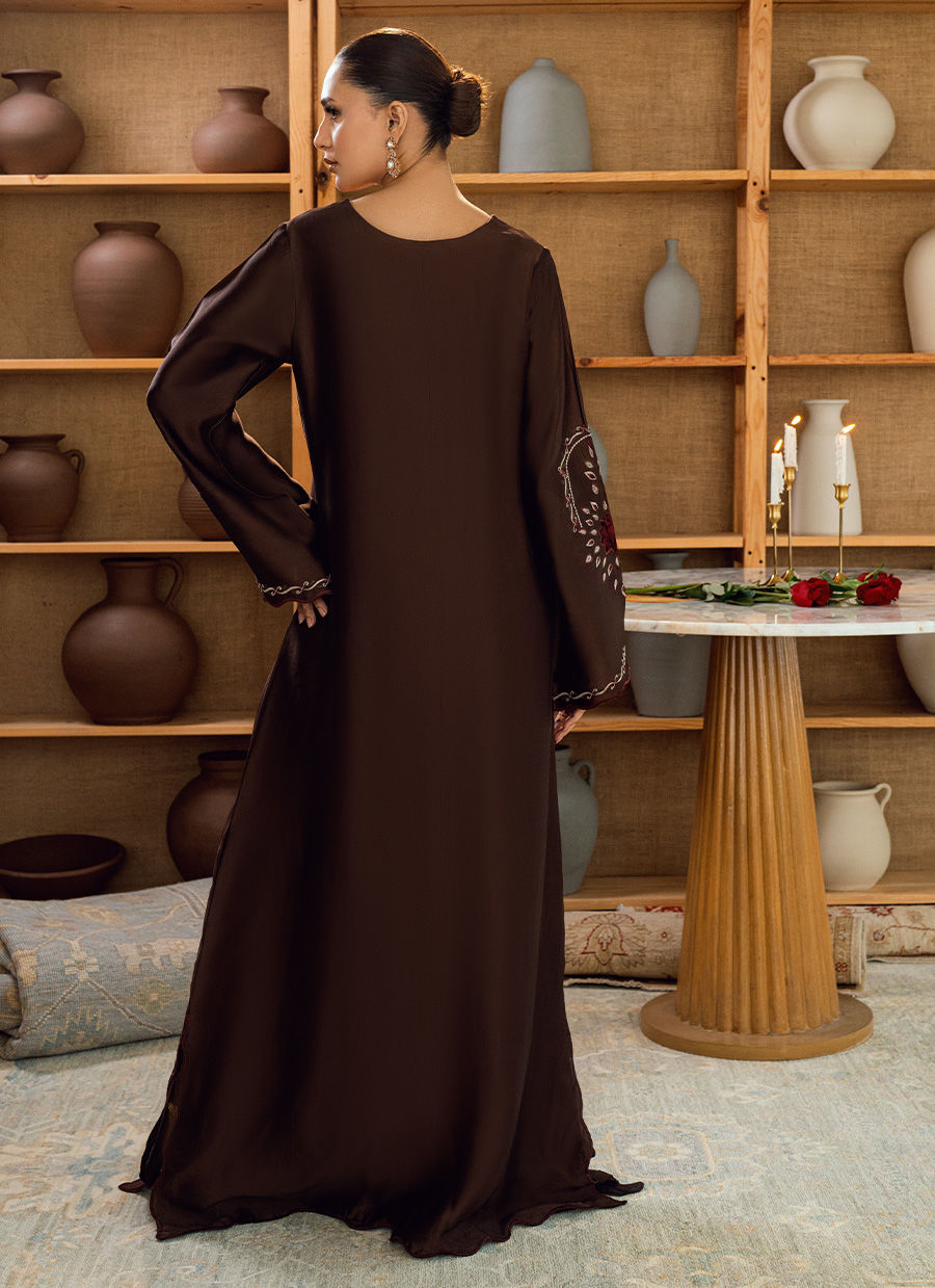 Commanding attention through artistry and refinement, Bronze Revere celebrates the opulent warmth of bronze tones with all-over embroidery that speaks of dedication and precision. Every inch of this full-length ensemble is adorned with intricate shaded threadwork, delicately enhancing the neckline, sleeves, and garment with couture-level craftsmanship. The silhouette flows effortlessly, pairing a refined long shirt kaftan with matching tailored trousers, creating a seamless balance between tradition and modern minimalism. Its rich color palette and detailed embellishment make it an ideal choice for elite soirées, festive dinners, and high-end gatherings—a statement of confidence and quiet power. Draped in elegance and sculpted for poise, Bronze Revere is more than a garment—it’s an attitude.