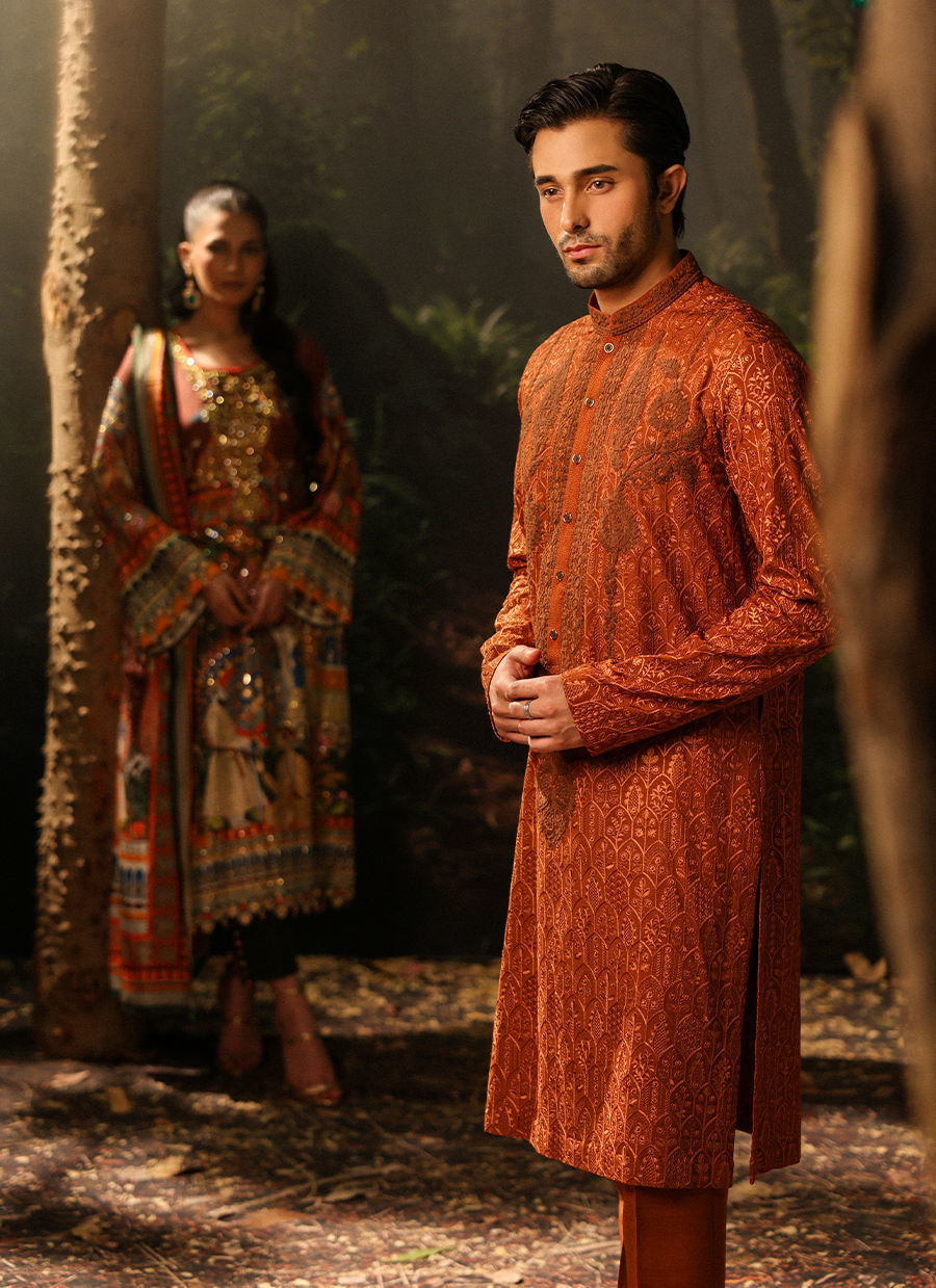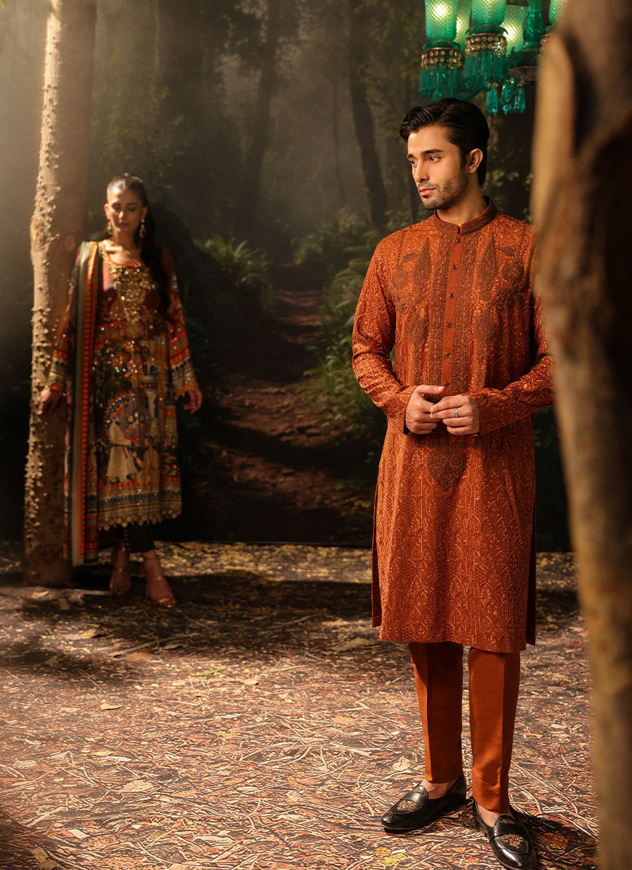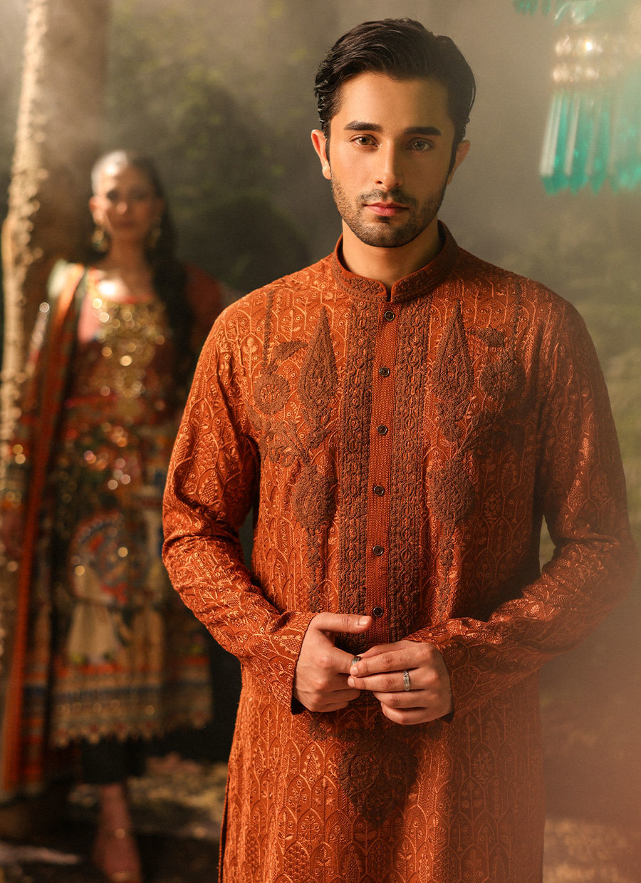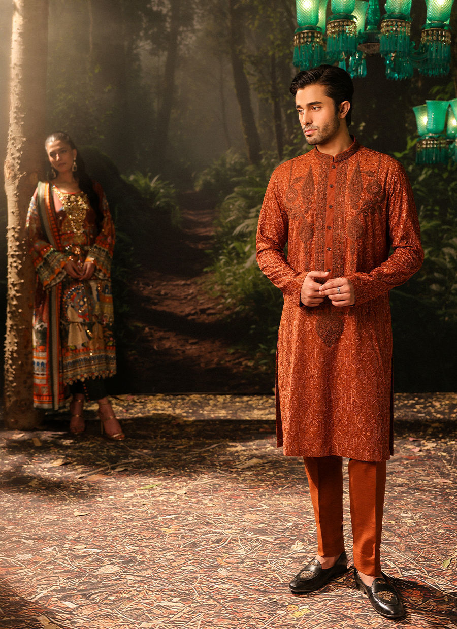 Color: Rust Fabric: Self Embroidered Work Details: Thread Embroidery