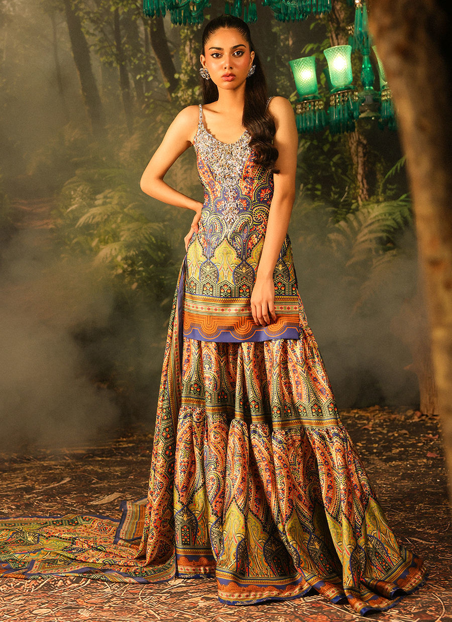Color: Green Fabric: Shirt and Gharra: Satin, Dupatta: Silk Work Details: Handwork