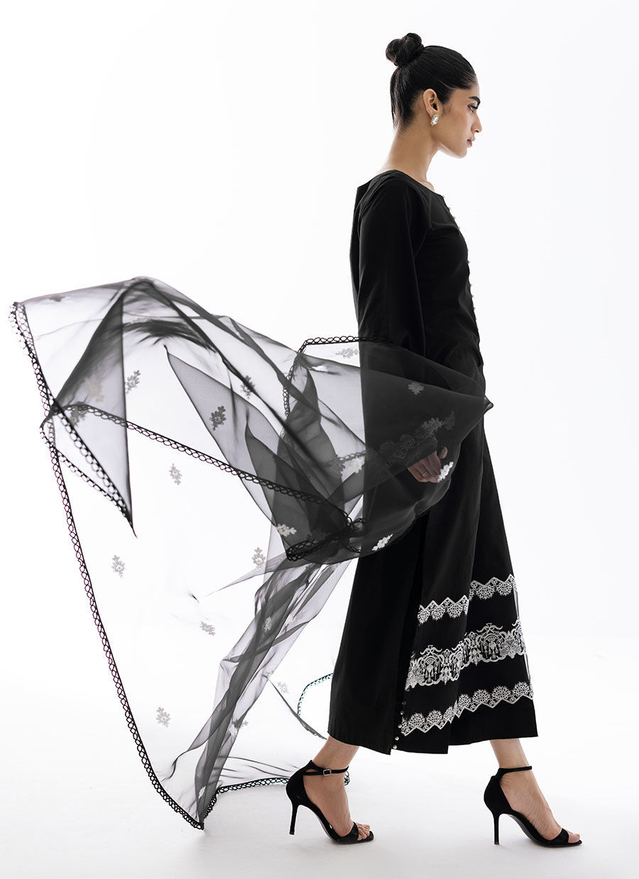 Color: Black Fabric: Lawn Dupatta: Organza Work Details: Embroidered