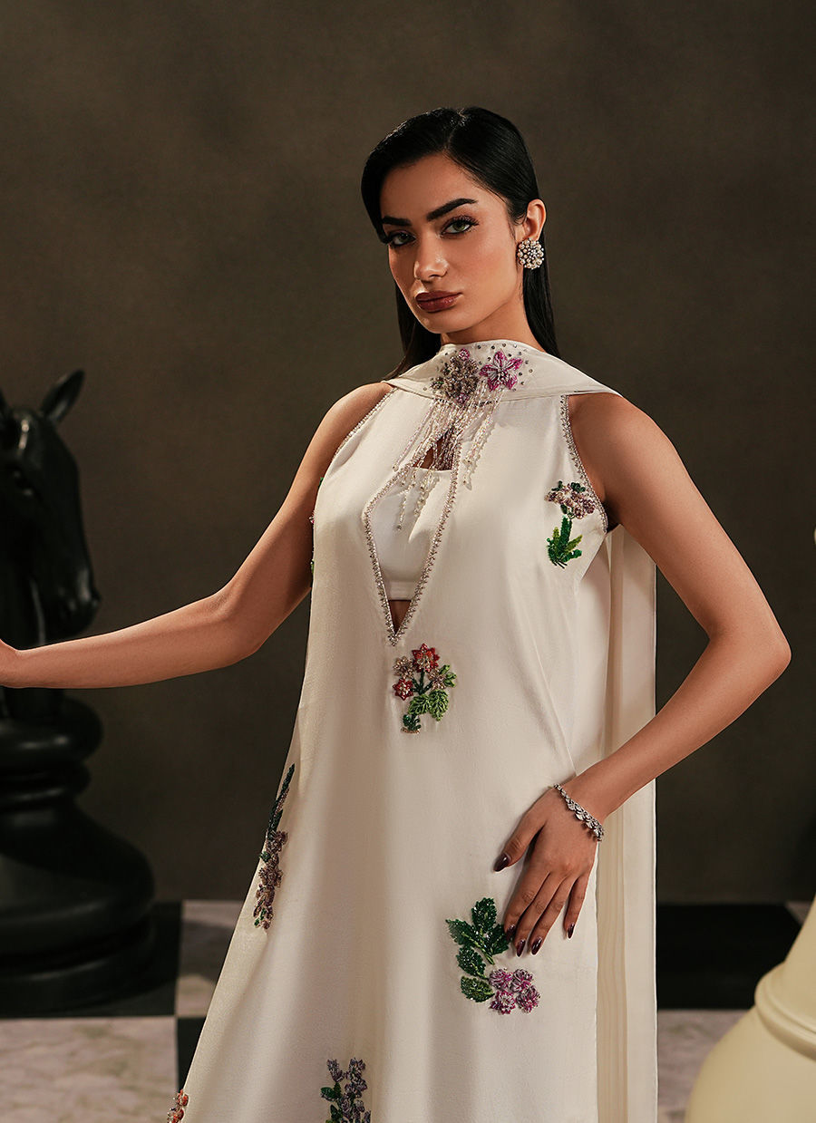 Color: White Fabric: Pure Silk Work Details: Embellished