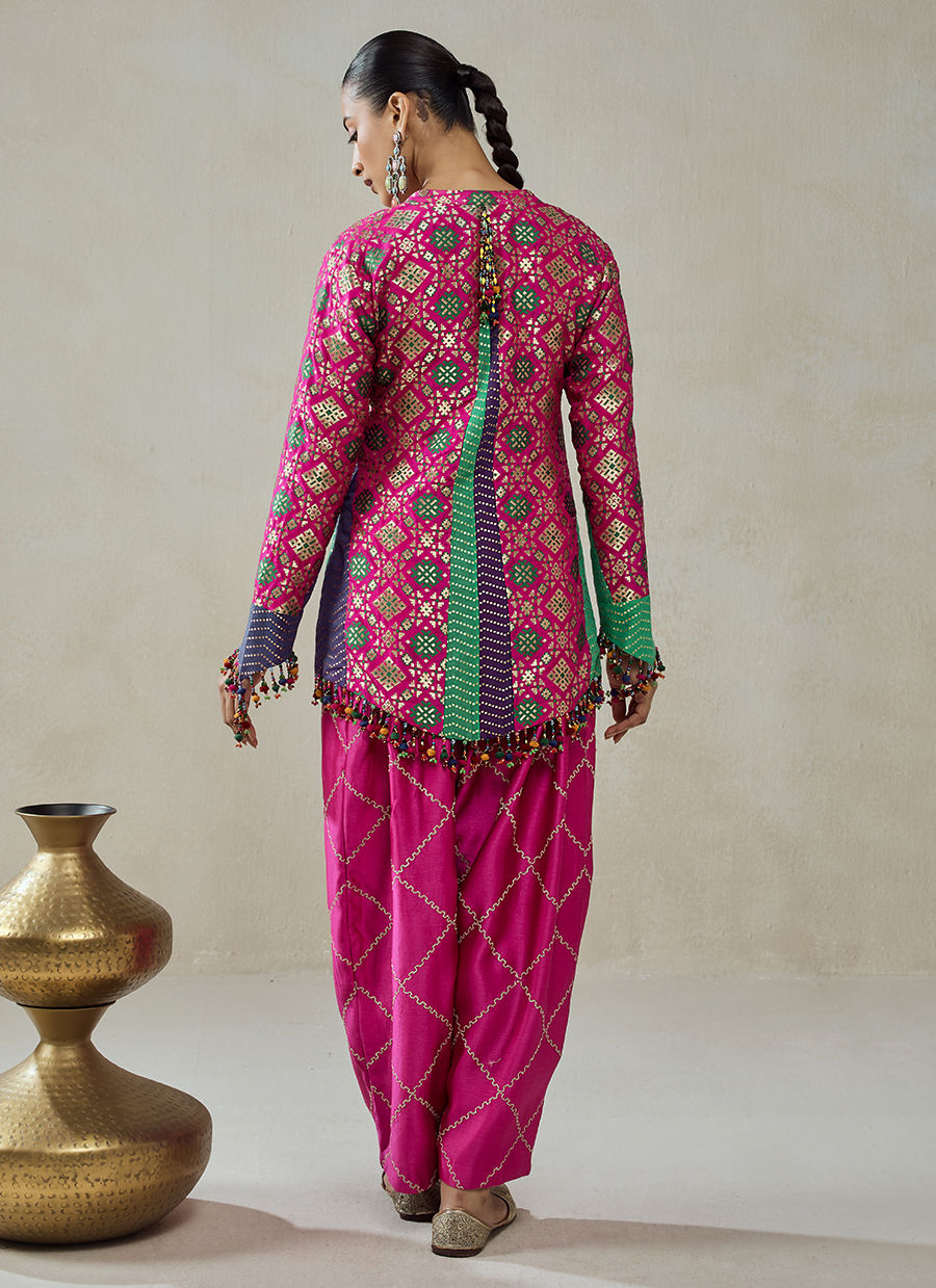 Fuschia Patola Silk Short Jacket Worked Salwar