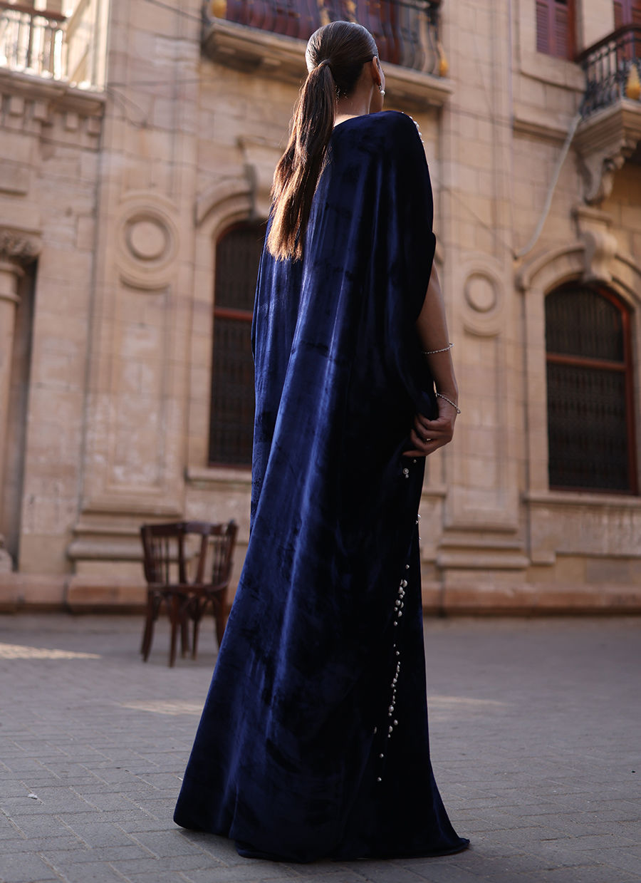 Color: Deep Blue Fabric: Pure Velvet Work Details: Embroidered and Embellished