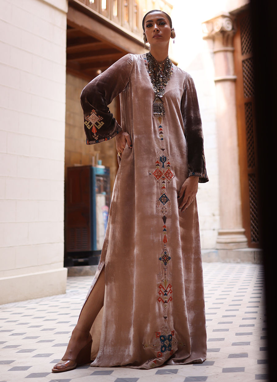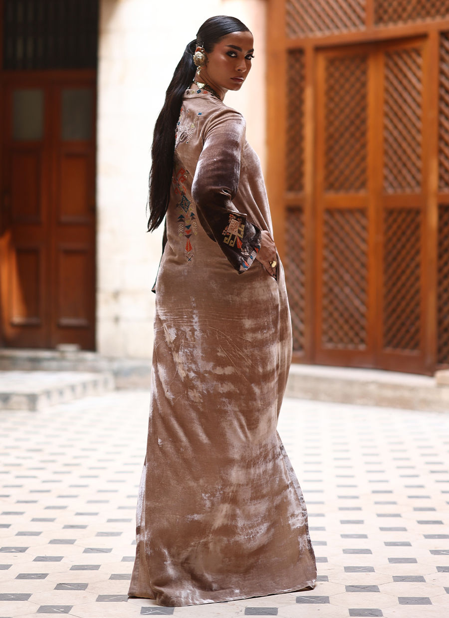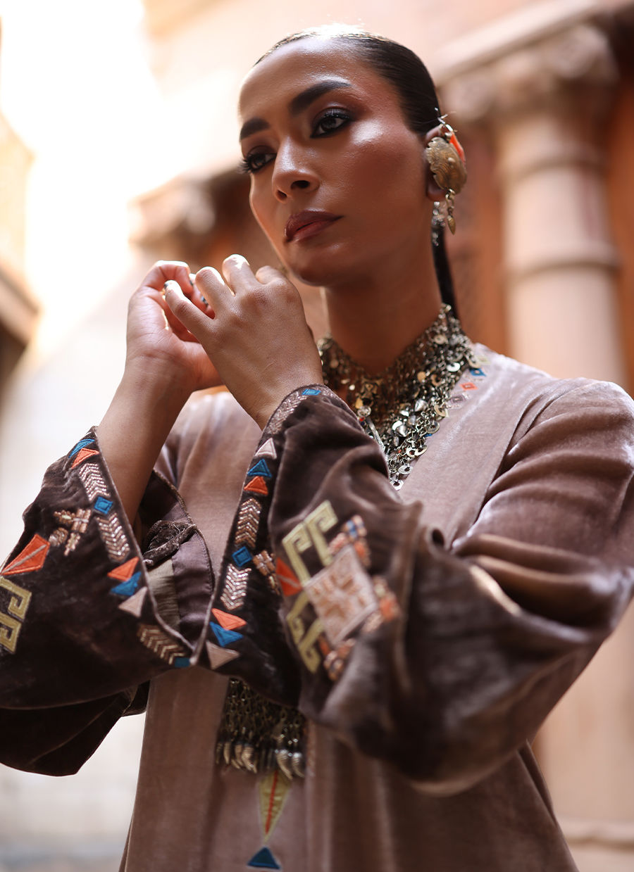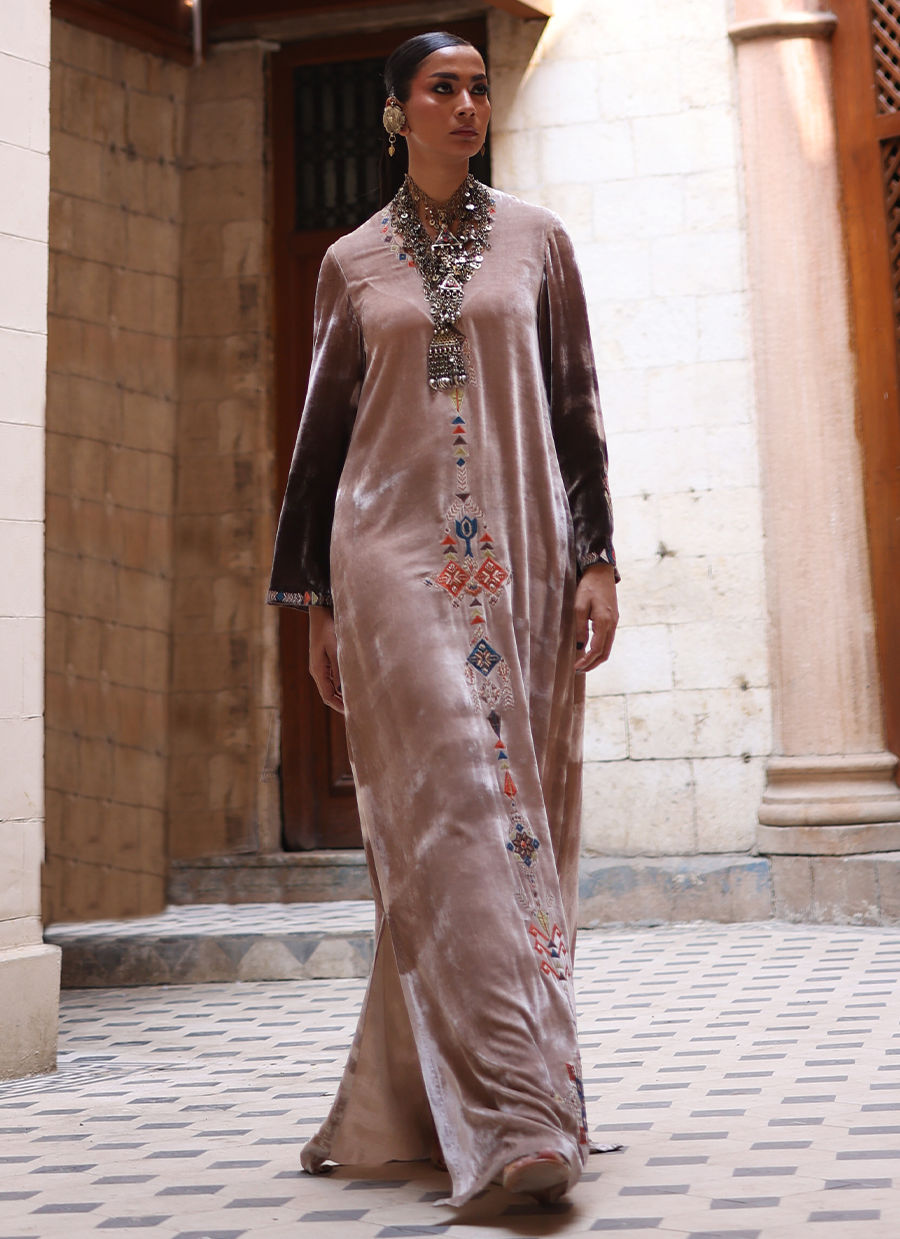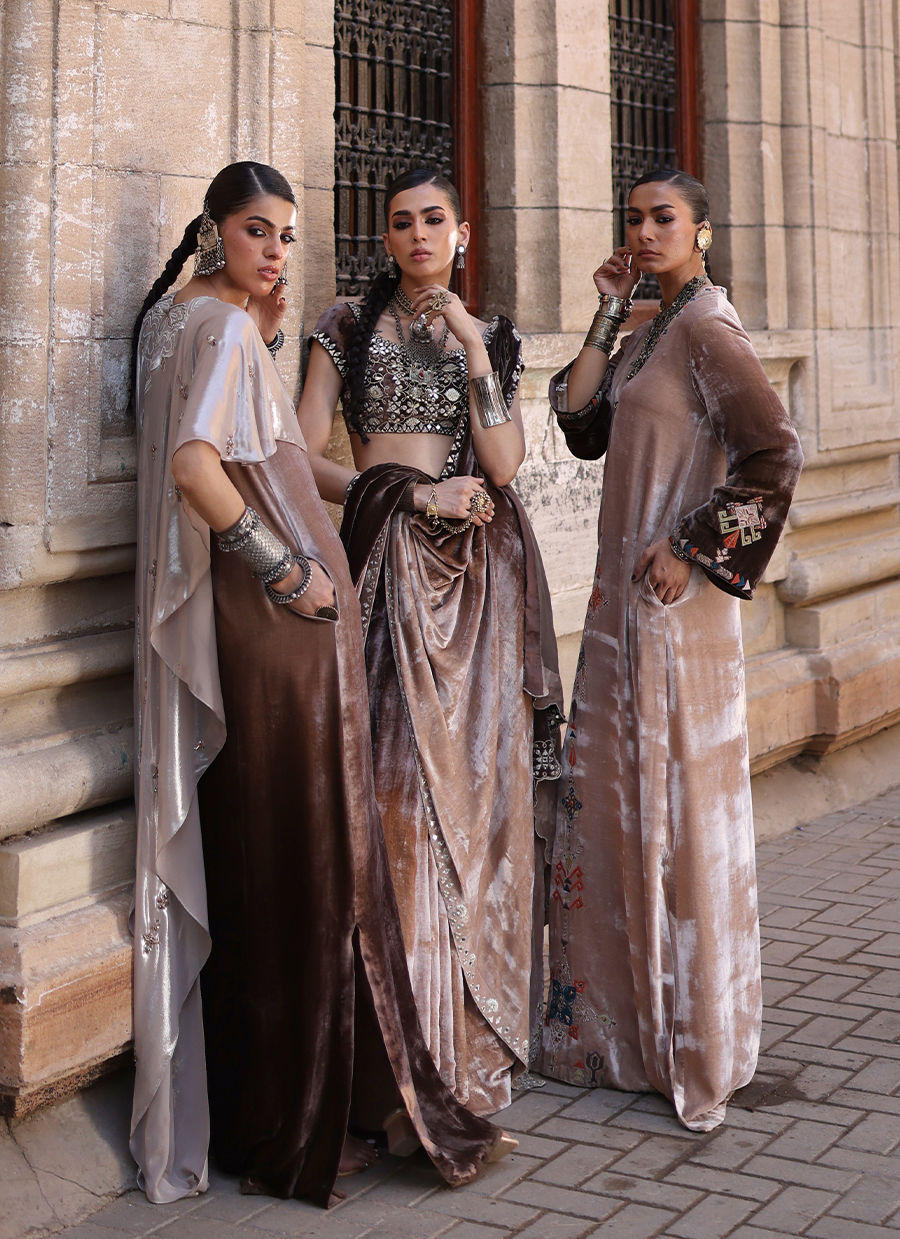 Color: Begie (Ombre Sleeves) Fabric: Pure Velvet Work Details: Embroidered and Embellished