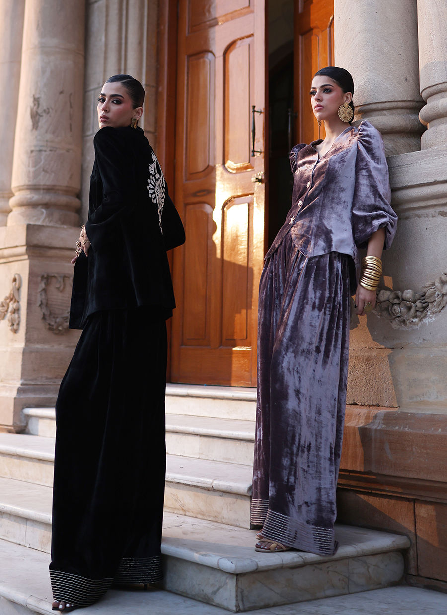 Color: Quail Fabric: Pure Velvet Work Details: Embroidered and Embellished
