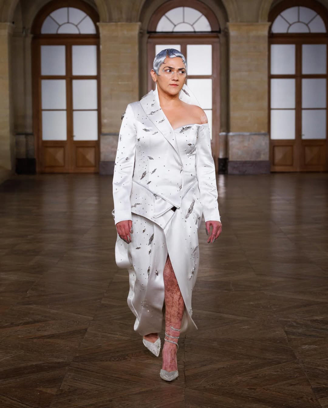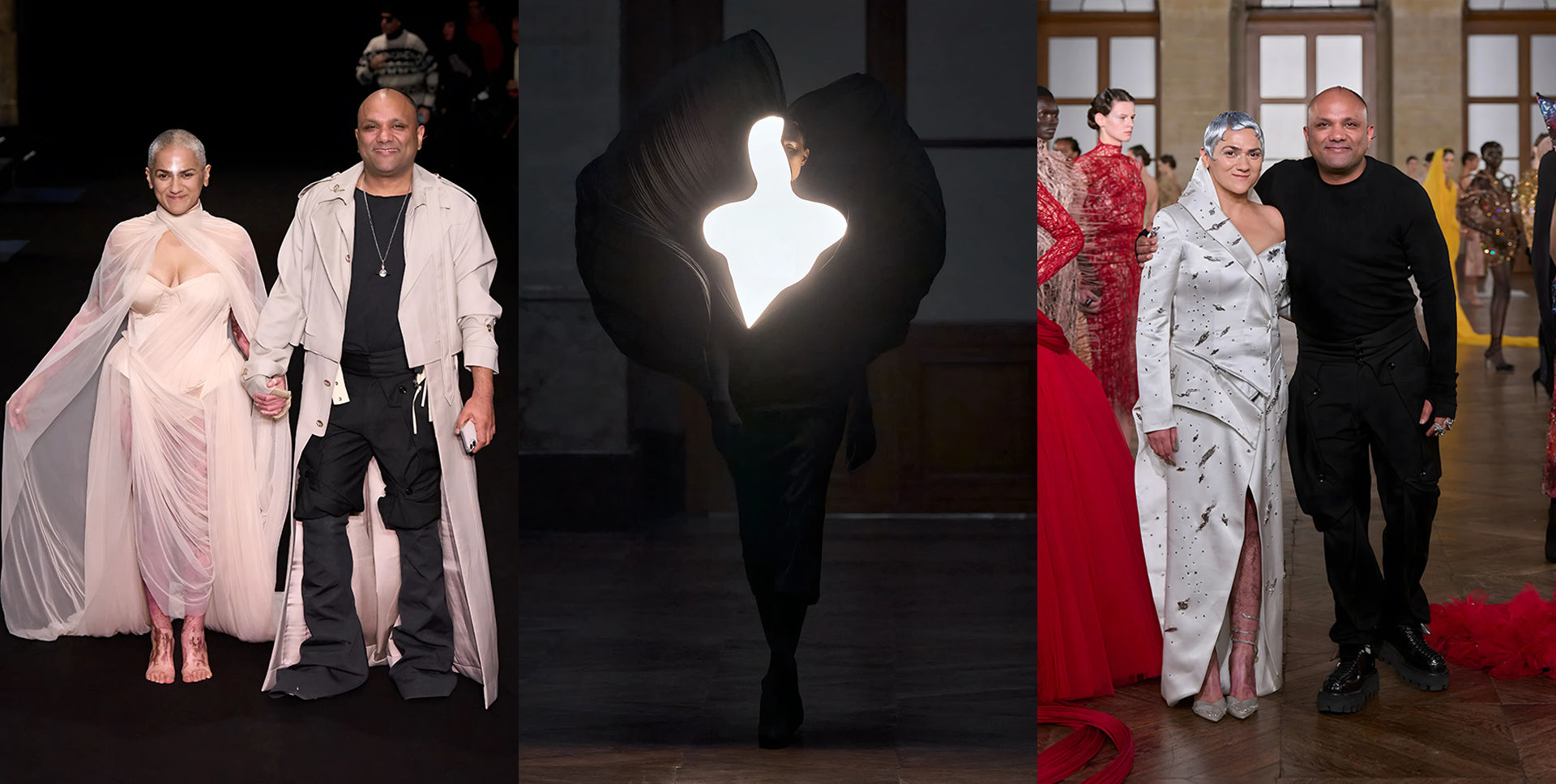 The only difference this time, the wearer who opened his S/S’25 show at the Paris Couture Week was none other than his partner, Sodhi, who walked the runway barefoot in a sheer pale dress that made her scars visible like medals of strength, resilience, and most of all, faith.