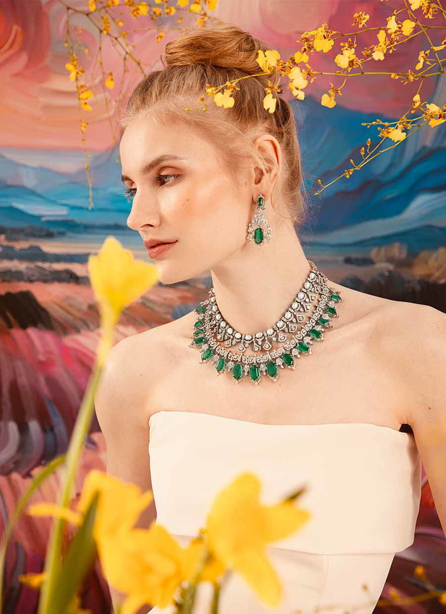 Top Necklace with Earrings Pearl Zirconia In Pure silver with Rhodium One Tone Silver
