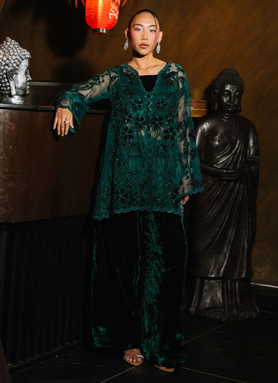 Color: Emerald Green Fabric: Velvet Work Details: Embellished