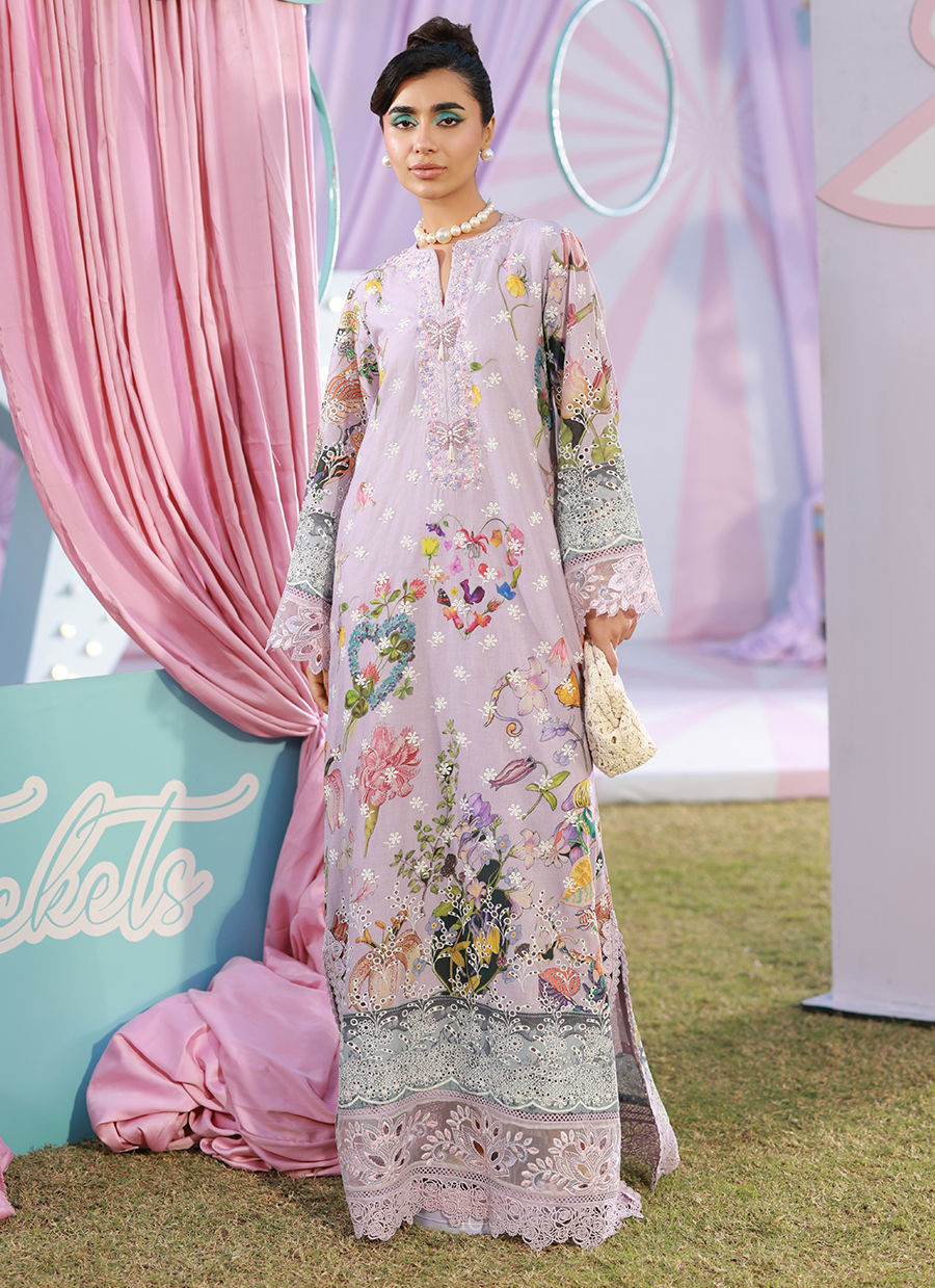 Color: Lavender Fabric: Schiffli Work Details: Embroidered
