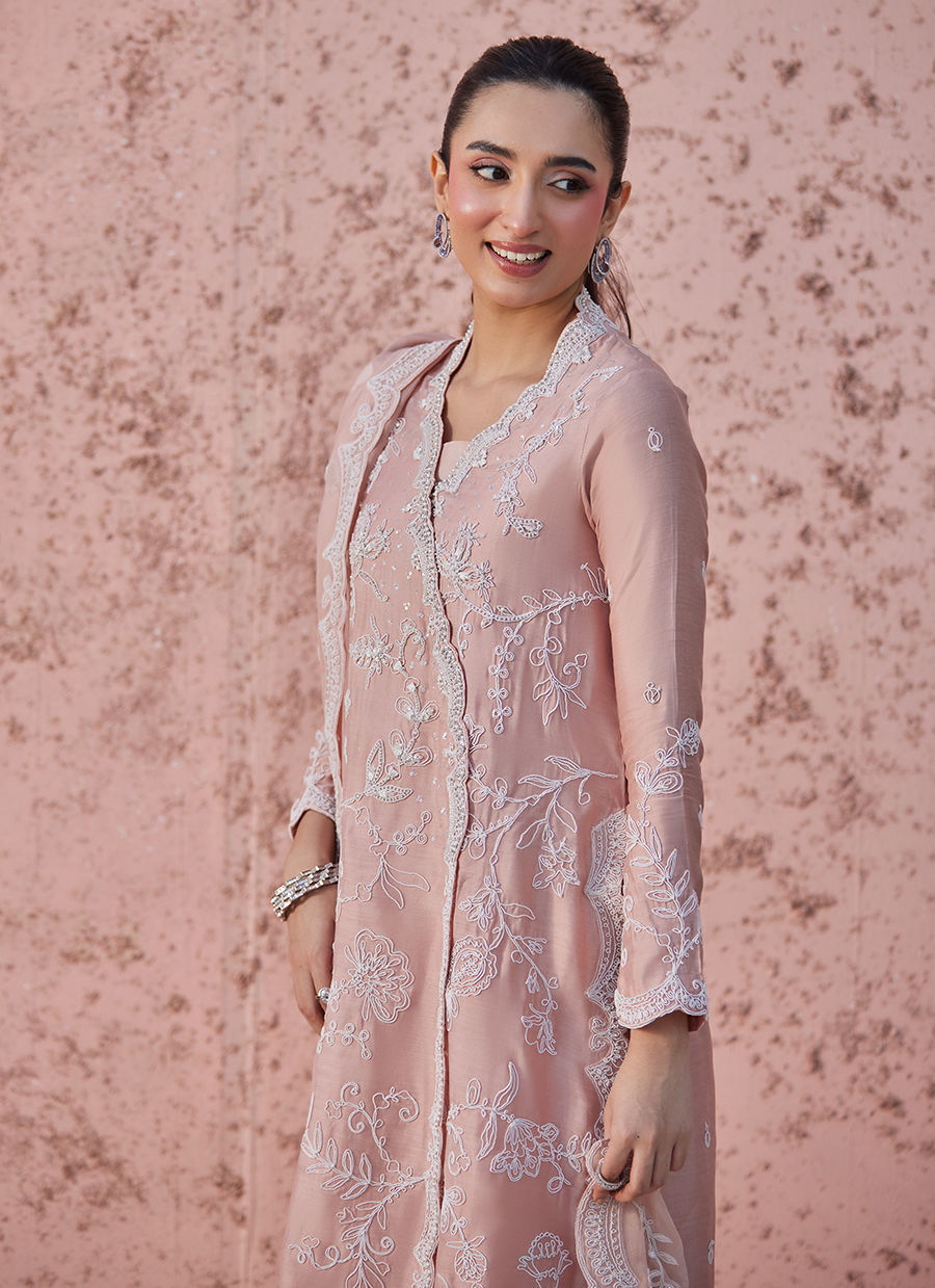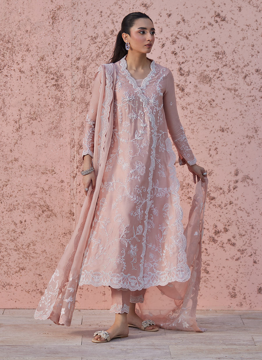 Understated yet intricately detailed — Jenny is a celebration of classic craft with a soft, modern sensibility. Rendered in a serene blush peach tone, this khaddi silk angrakha brings together fluid movement and fine artistry in a way that feels both effortless and considered.