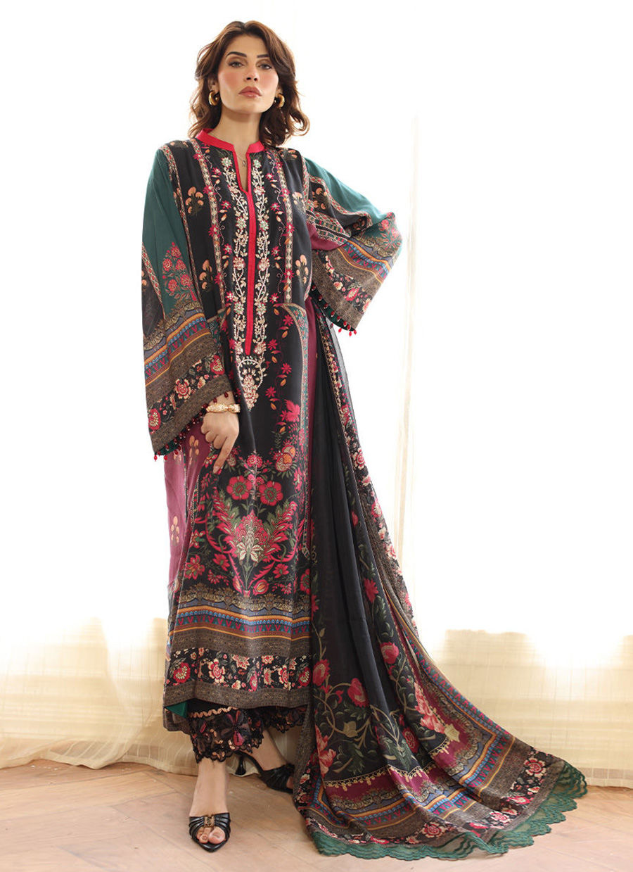 Color: Black Fabric: Shirt: Silk, Dupatta: Pure Medium Silk, Trousers: Korean Silk Work Details: Embroidered And Printed