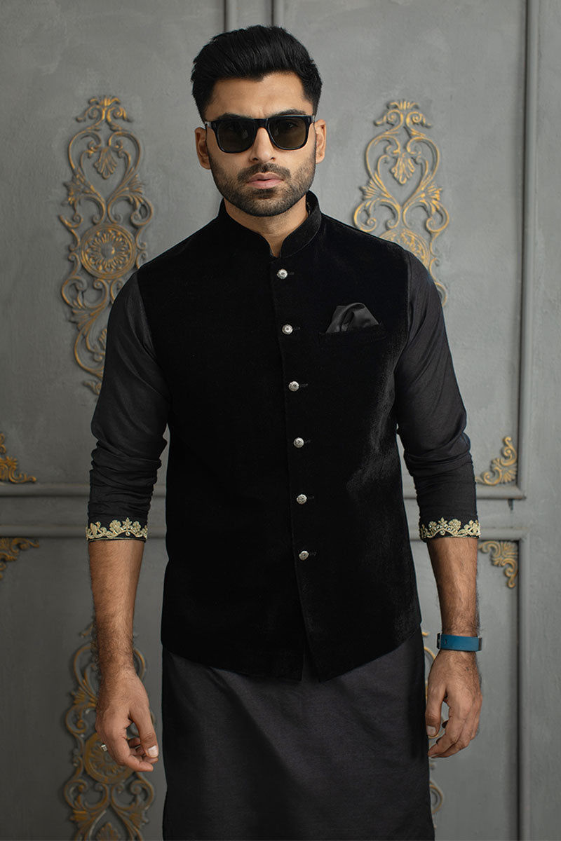 Color: Black Fabric: Velvet Work Details: Button Detailing