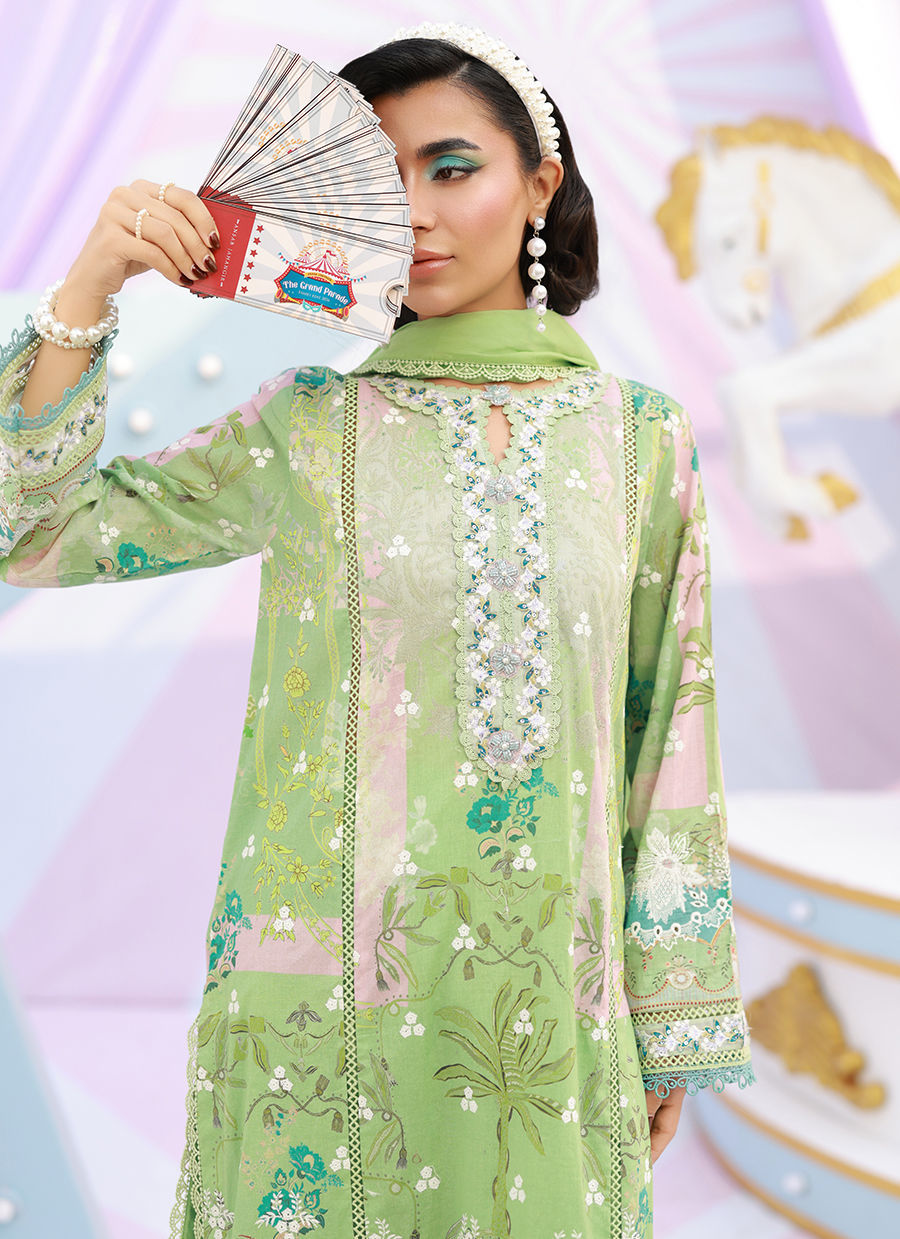 Color: Lime Green Fabric: Schiffli Work Details: Embellishments, Cutwork, Embroidery
