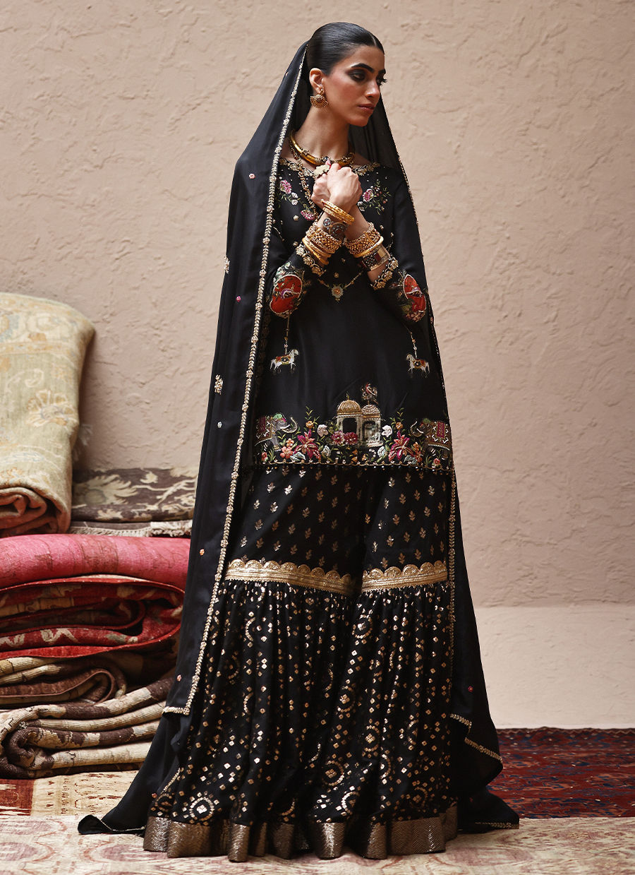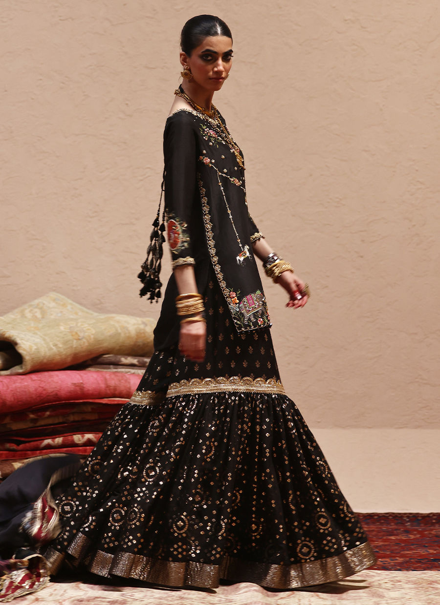 Color: Black Fabric: Pure Raw Silk Work Details: Embellished And Embroidered