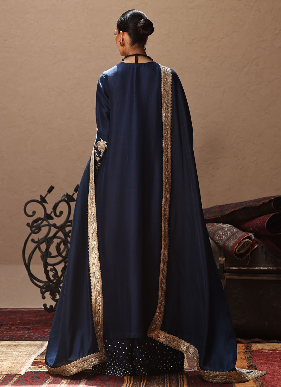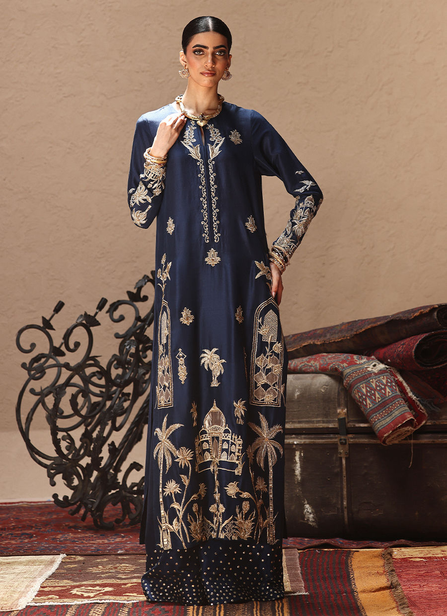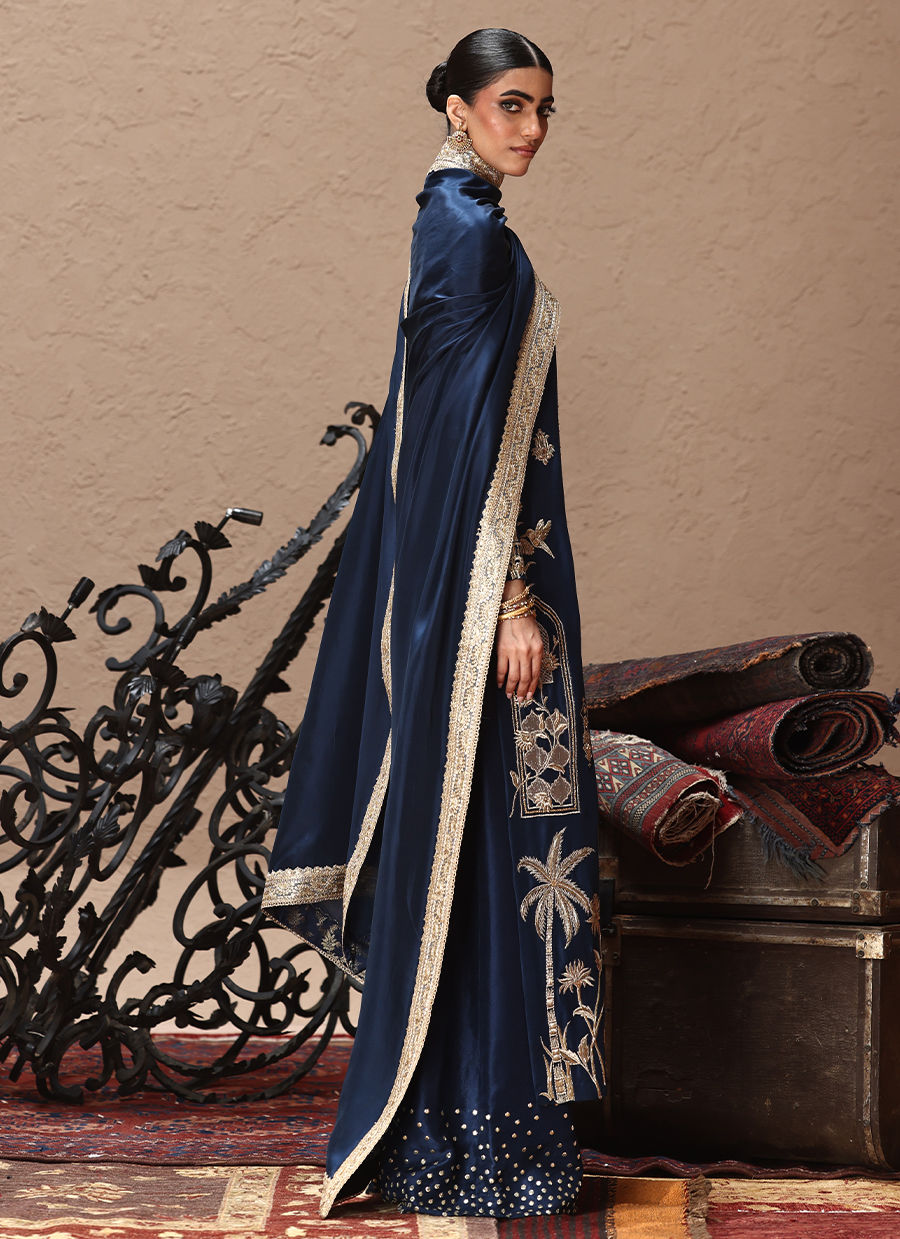 Color: Deep Blue Fabric: Pure Raw Silk Work Details: Embellished And Embroidered