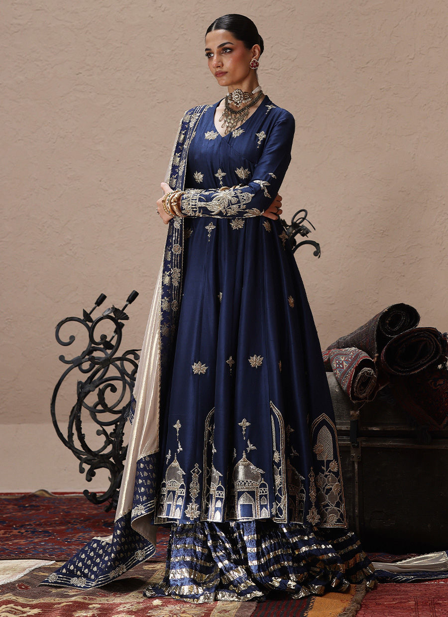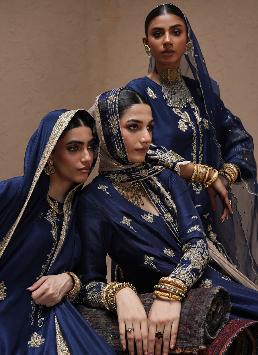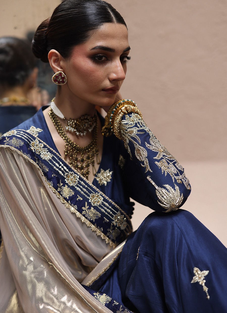 Color: Deep Blue Fabric: Pure Raw Silk Work Details: Embellished And Embroidered