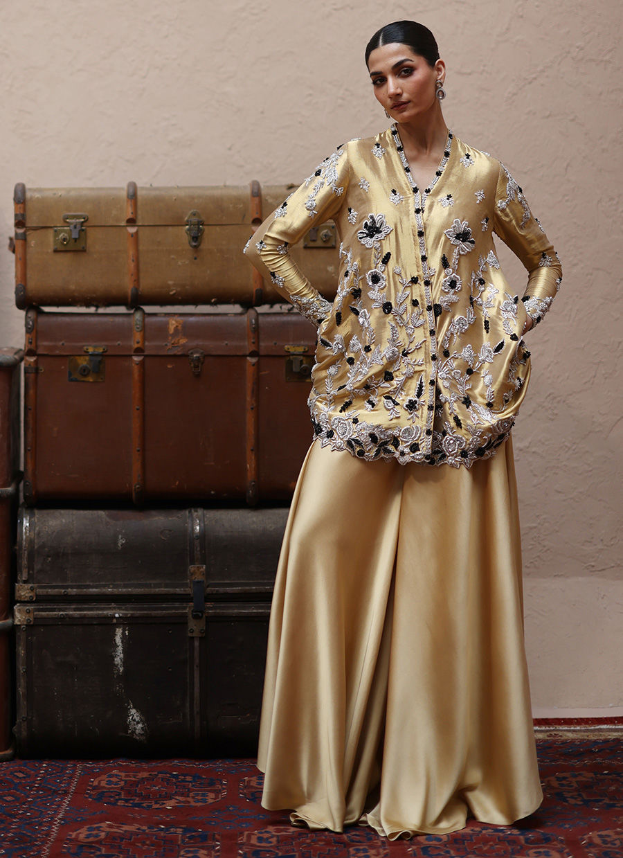 Color: Rich Gold Fabric: Pure Raw Silk Work Details: Embellished And Embroidered