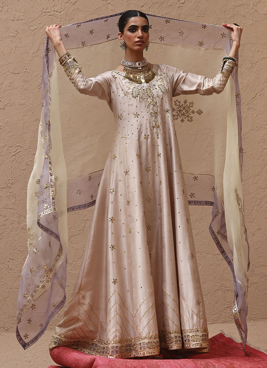 Color: Seed Peals Fabric: Pure Raw Silk Work Details: Embellished And Embroidered