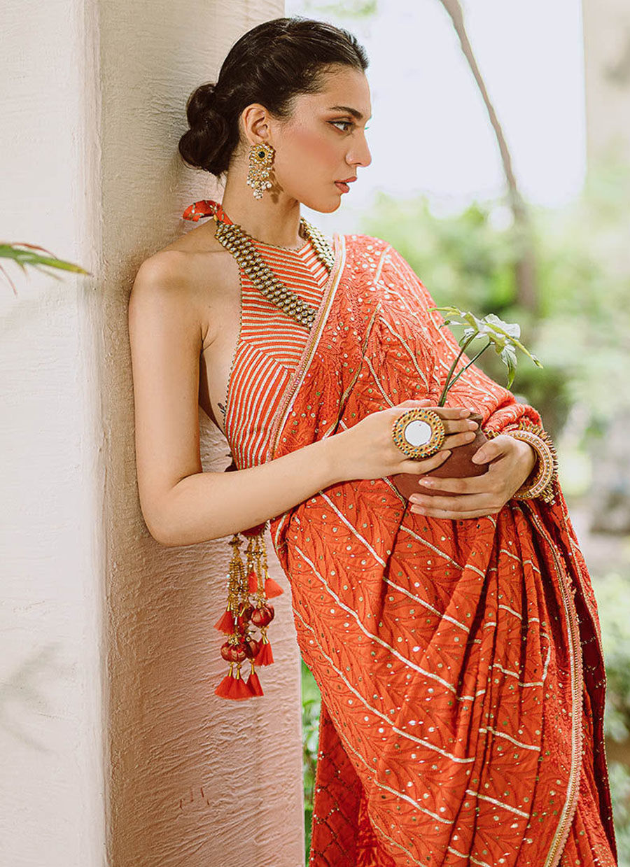 Color: Tangerine Fabric: Georgette Chiffon Work Details: Embroidered and Embellished