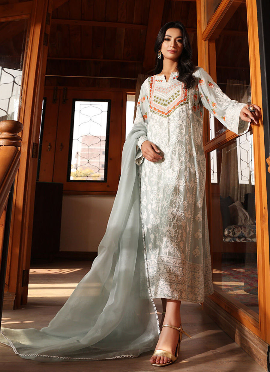 Indulge in the timeless beauty of "Mia" and experience the allure of exquisite embroidery in light aqua blue. With its fully embroidered front, back, and sleeves, this enchanting shirt invites you to embrace the artistry of traditional craftsmanship and make a statement with every step you take.