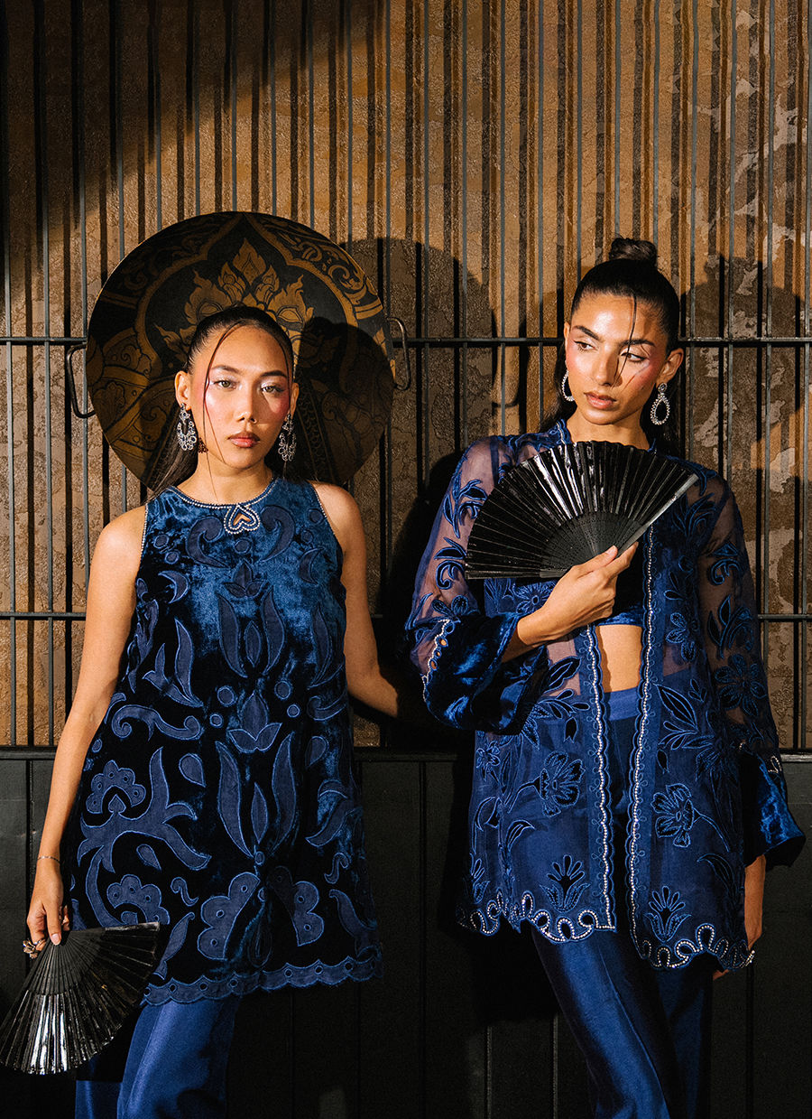 Color: Navy Blue Fabric: Velvet Work Details: Embellished