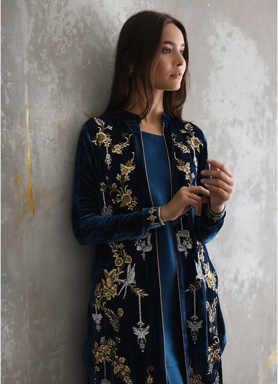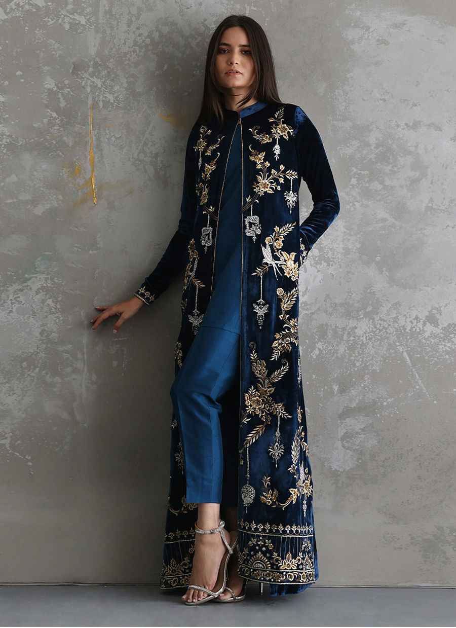 Color: Teal blue Fabric: Velvet Work Details: Embellished