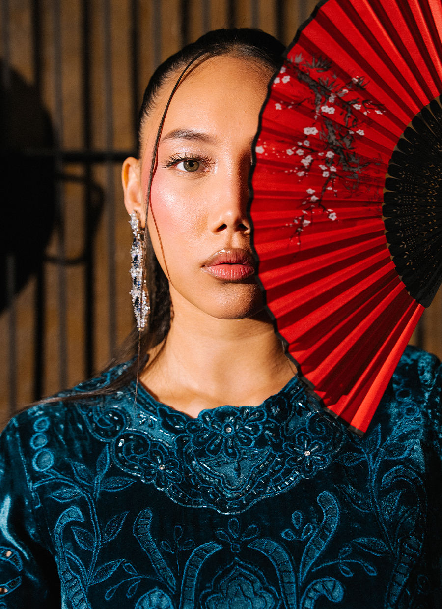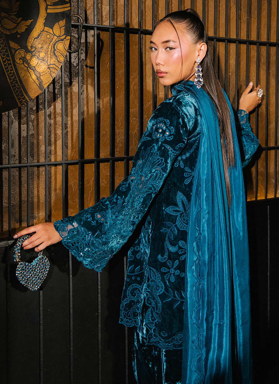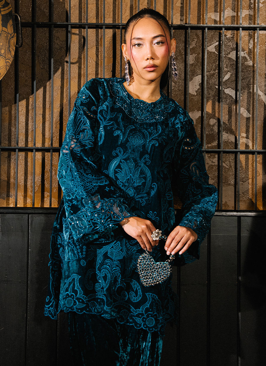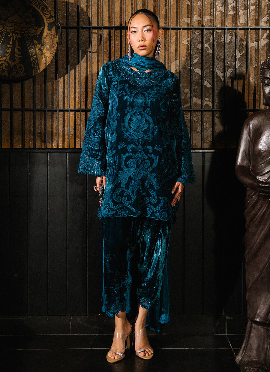 Color: Teal Fabric: Velvet Work Details: Embellished