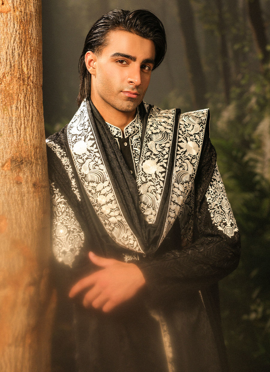 Color: Black Fabric: Self Embroidered Work Details: Thread Embroidery