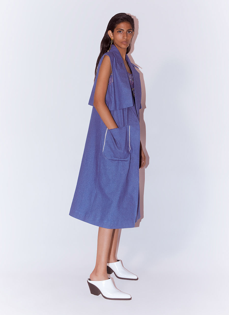 The Nero Nero Crop Trench Coat crafted from our stunning denim fabrication, this trans-seasonal piece is a statement. Made with chic wide lapels and large pockets, this is a trend setting piece. Pair it with our Nero Nero Crop Top and shorts and with heels for an elegant look.