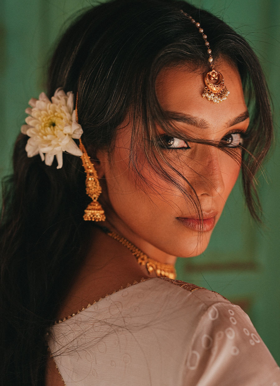 Color: Creamy White Fabric: Chiffon Work Details: Embellished