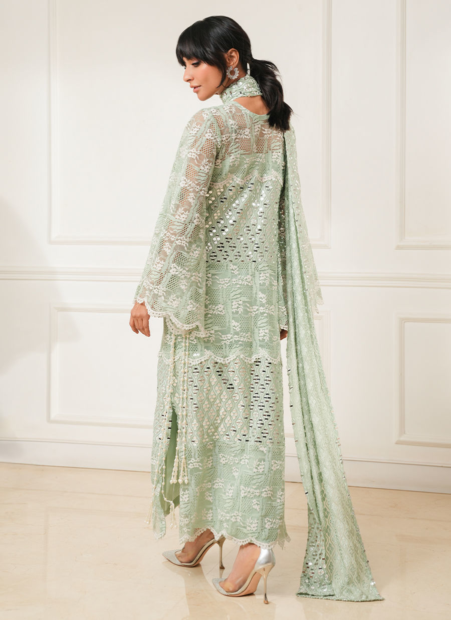 Color: Ice Blue Fabric: Georgette Chiffon Work Details: Foil work