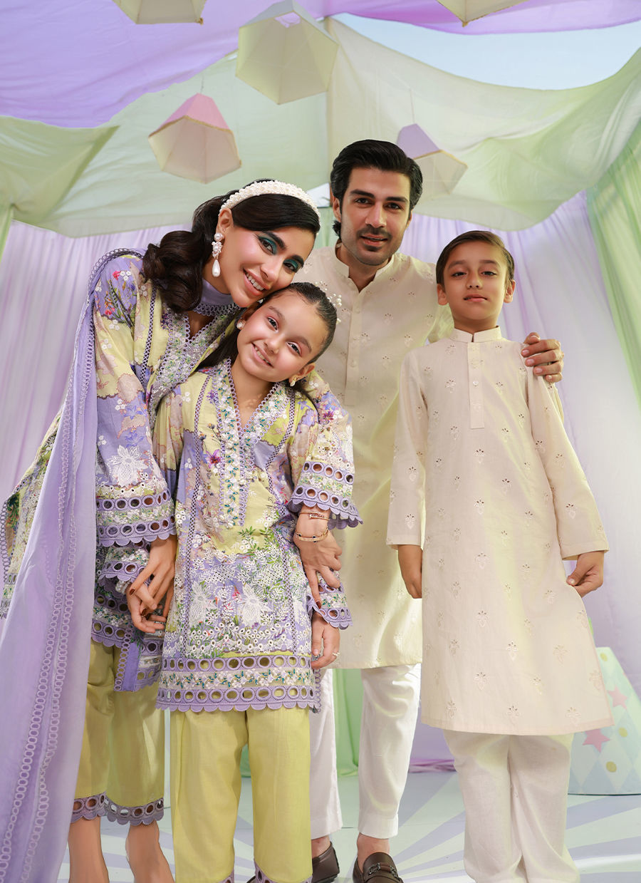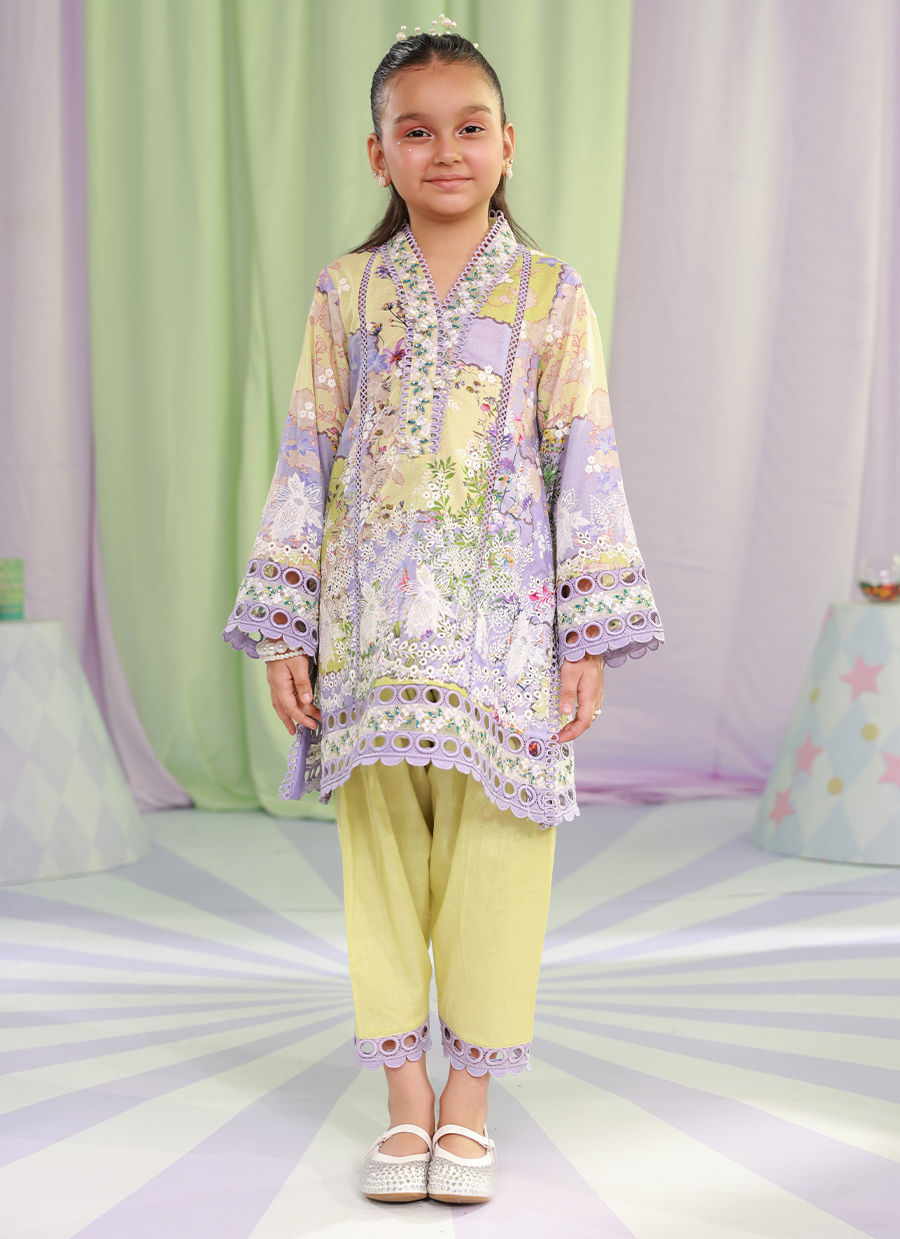 Color: Lilac and Mint Fabric: Schiffli Work Details: Embroidered