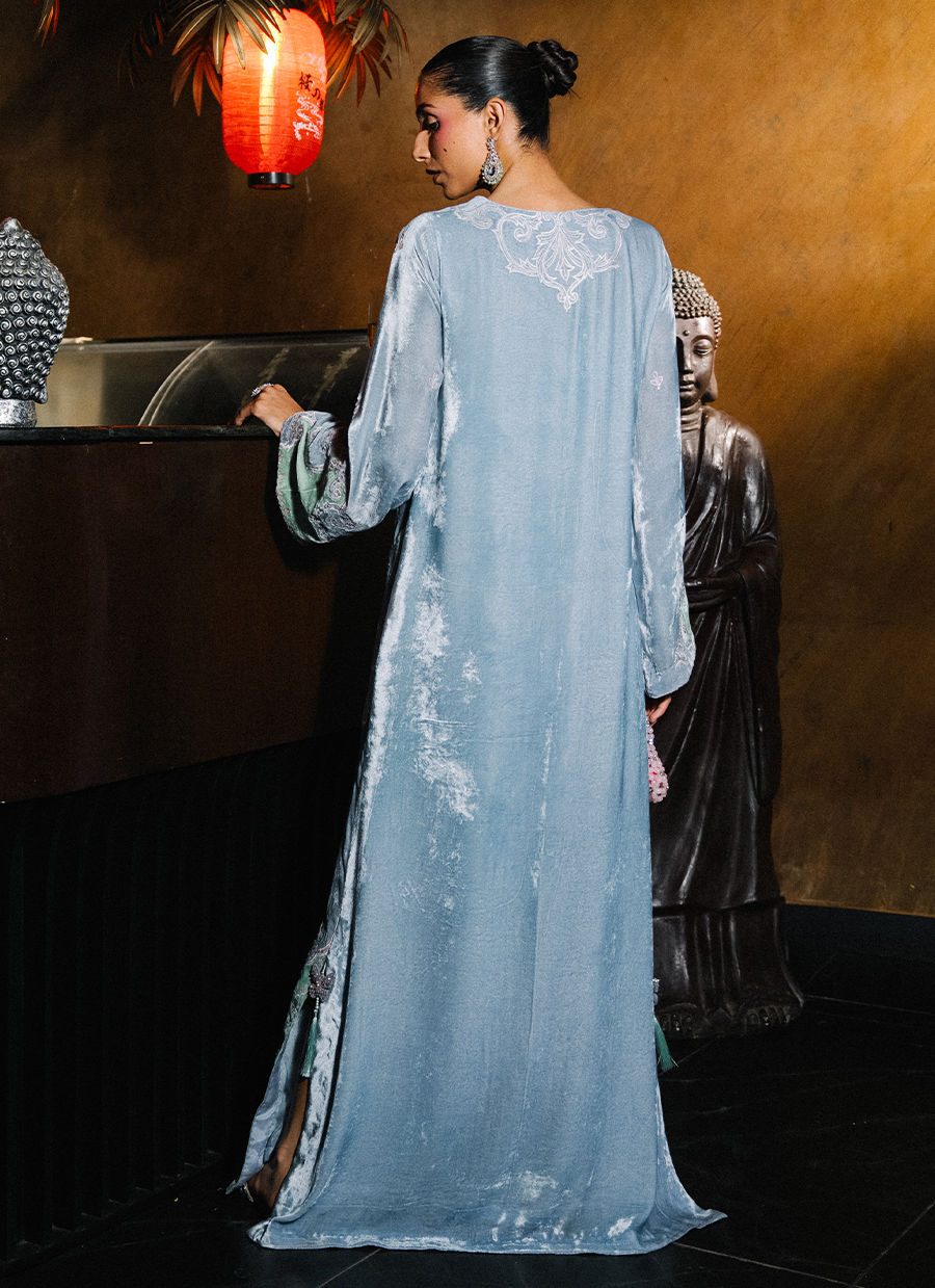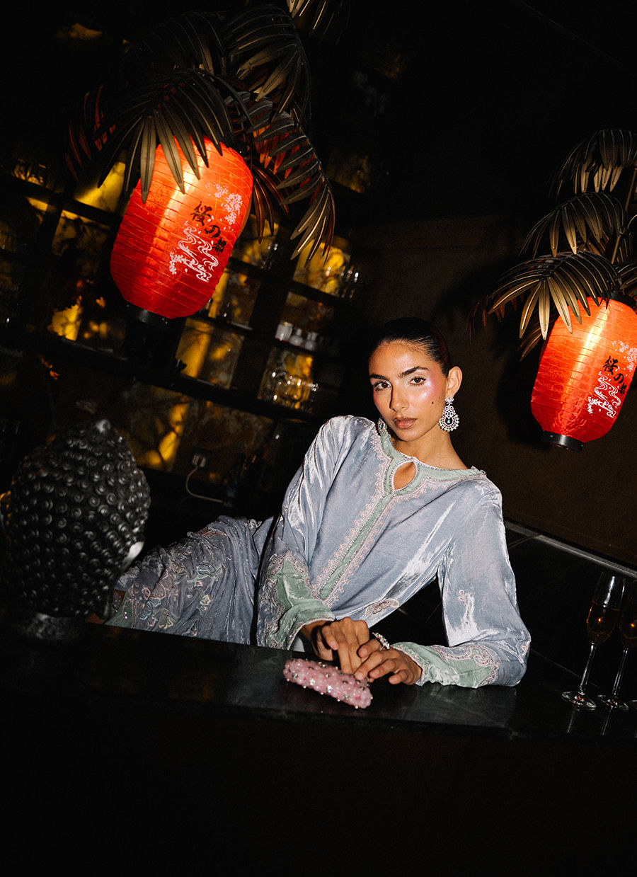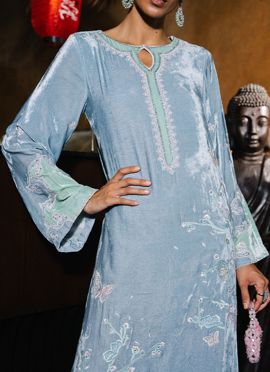 Color: Periwinkle Fabric: Velvet Work Details: Embellished