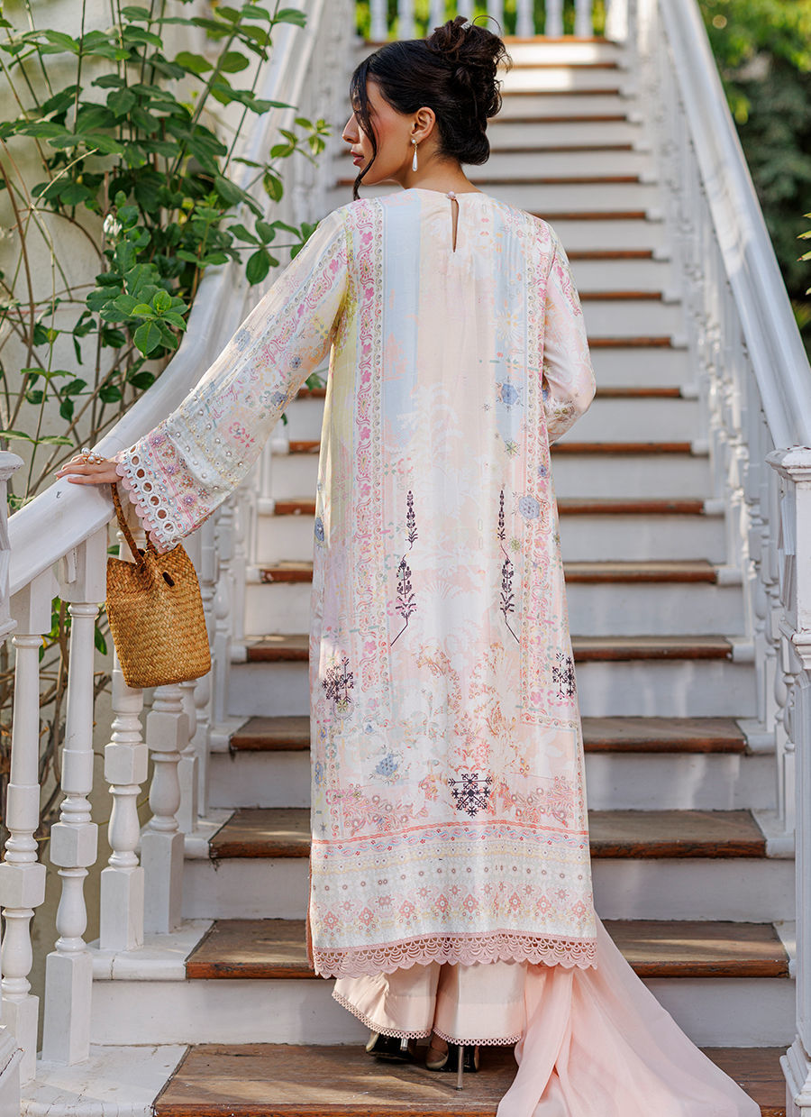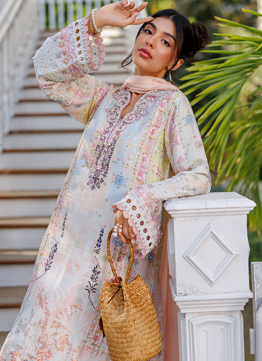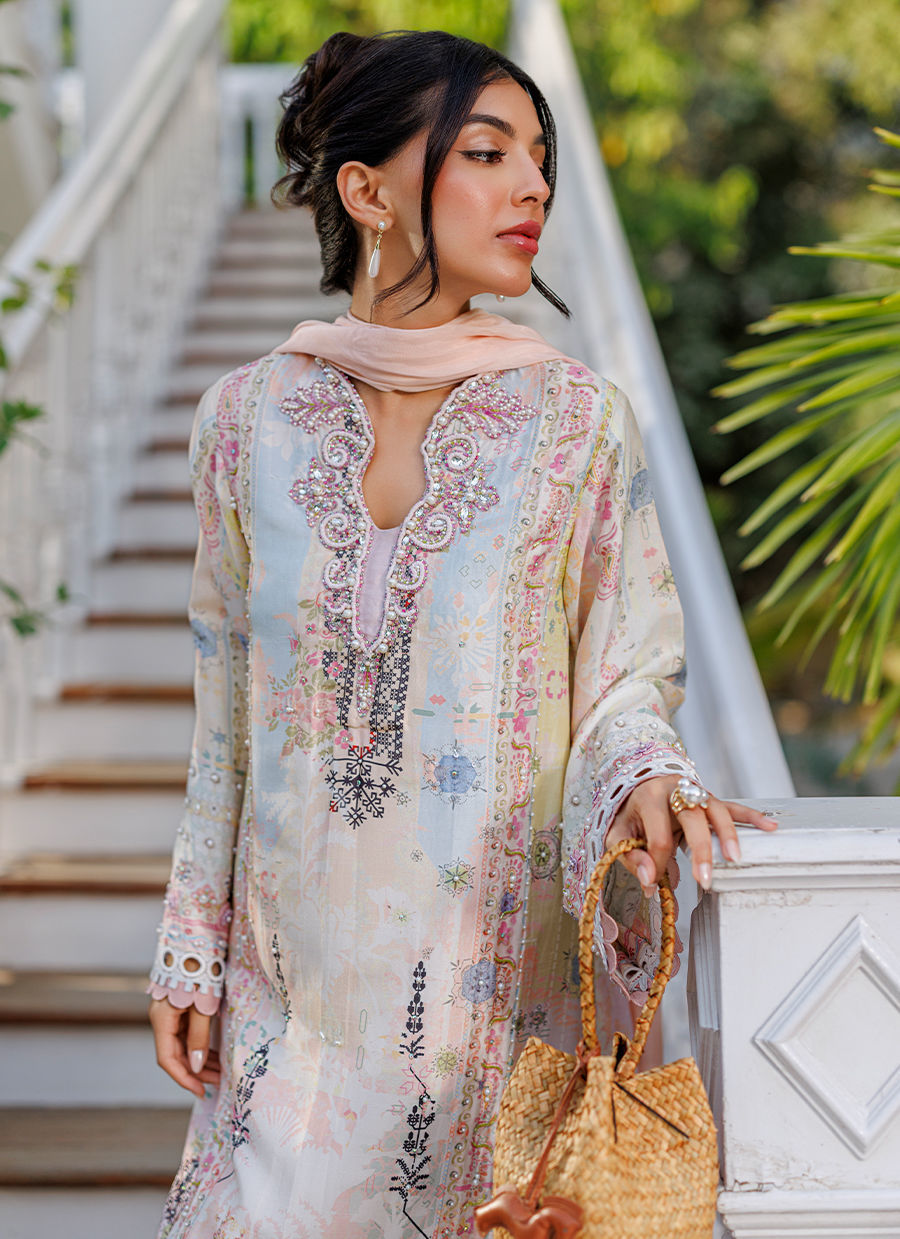 A timeless long raw silk shirt featuring an intricately embellished neckline with delicate hand detailing spread across the silhouette. The sleeves and shirt border are finished with refined lace work, adding texture and elegance. It is paired with an izar adorned with matching lace accents and complemented by a dupatta detailed with lace. *Model is 5'5" and is wearing a size extra small.