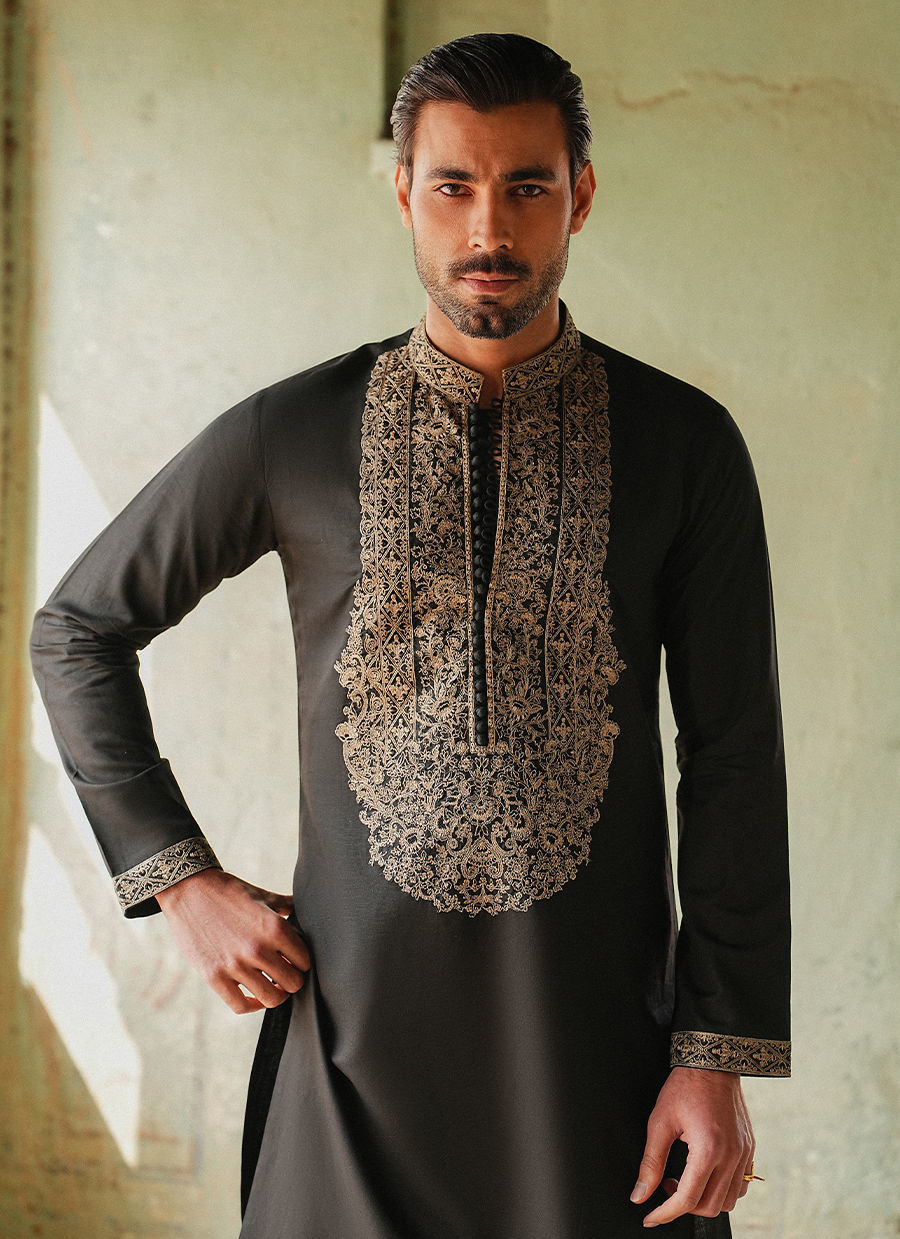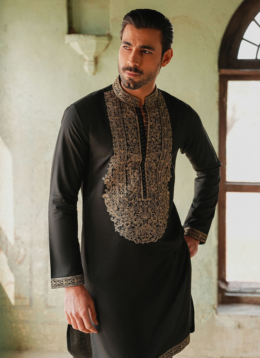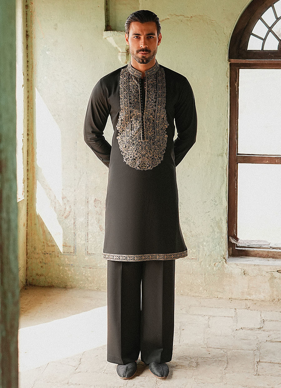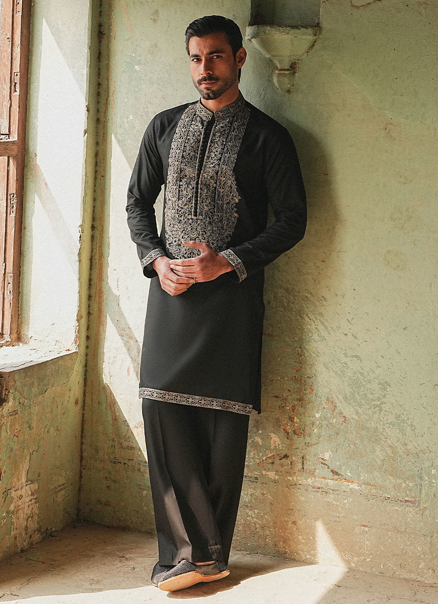 Color: Black Fabric: Cotton Linen Work Details: Neckline on Kurta , Border on Sleeves And Hem