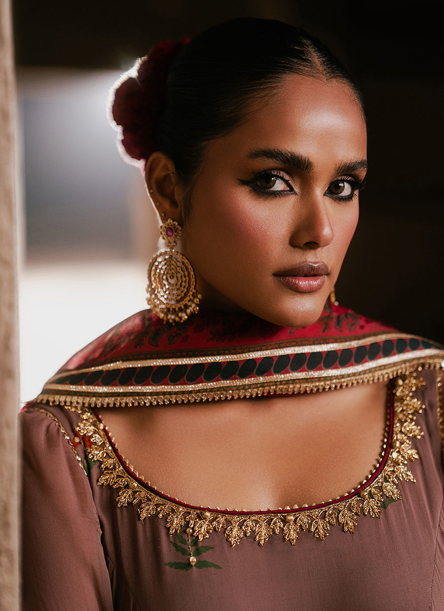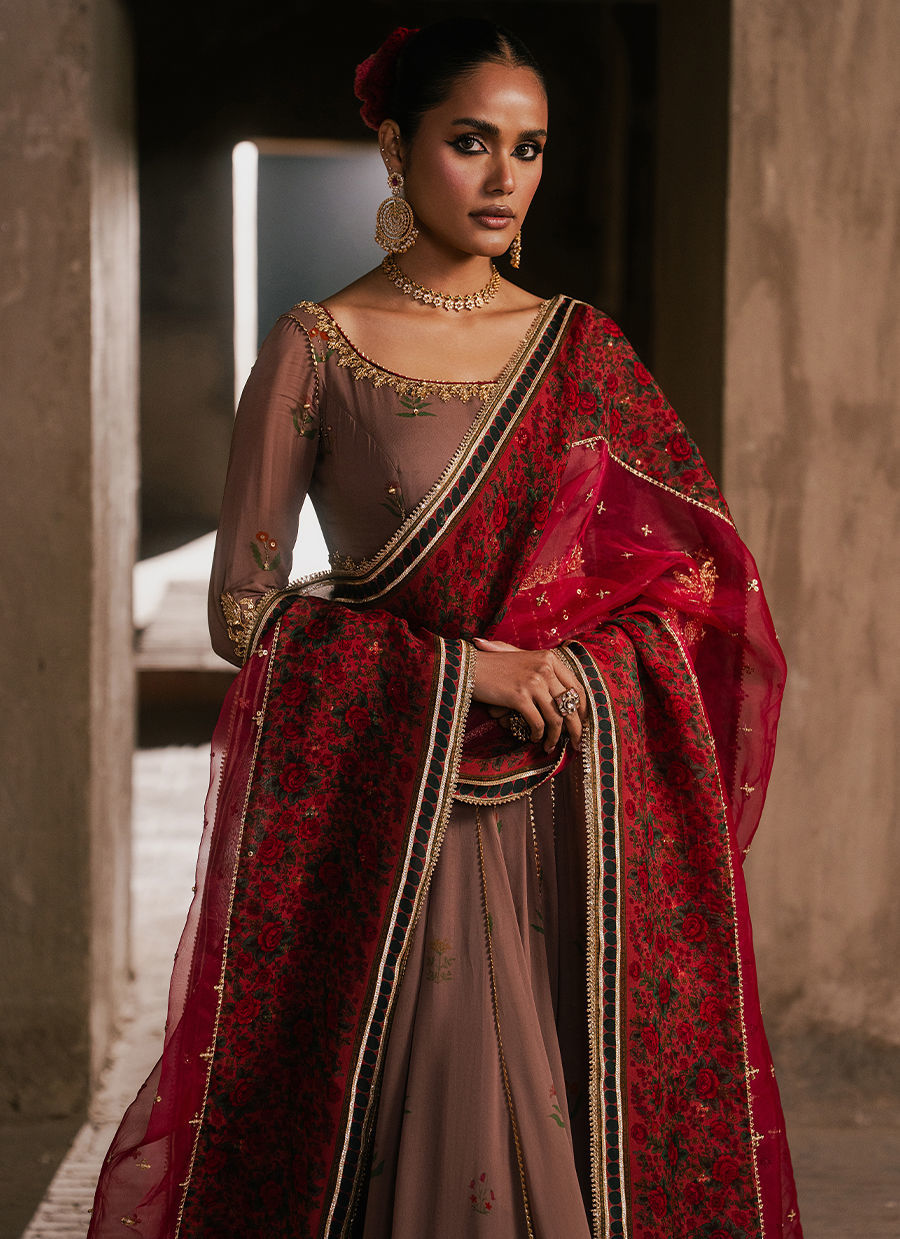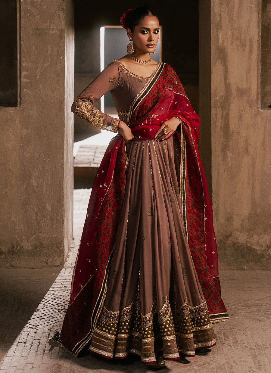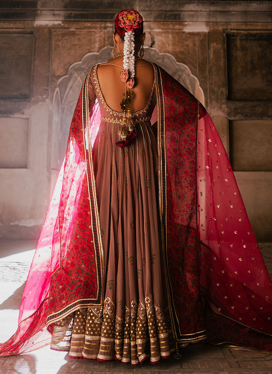 Color: Nude Brown Fabric: Peshwas: Chiffon, Dupatta: Organza Work Details: Embellished